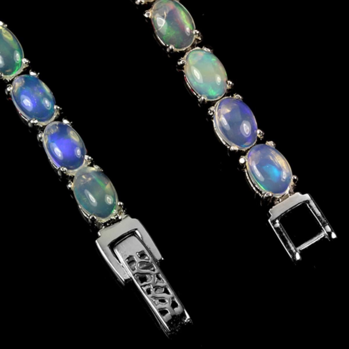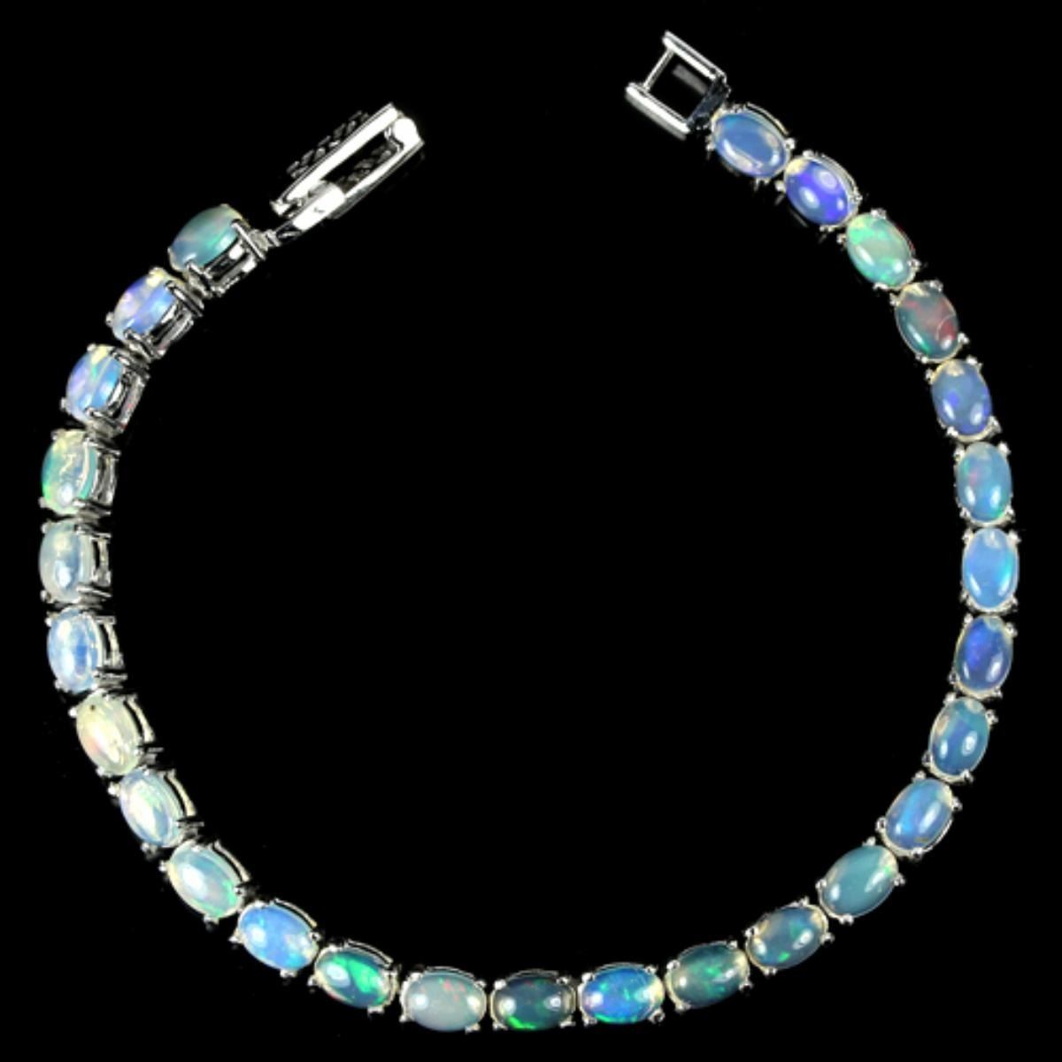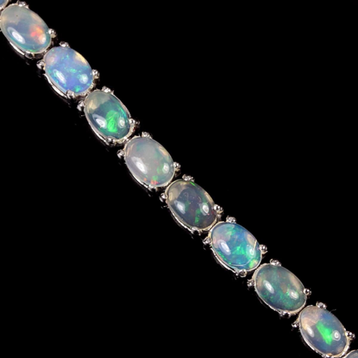 NATURAL AAA MULTI COLOR WHITE OPAL 925 SILVER BRACELET 14K WHITE GOLD COATING; LENGTH OF ITEM (Inch.) 7.00; ITEM QUANTITY -1; STONE SHAPE -OVAL CABOCHON CUT; STONE DIMENSION -6 X 4 MM.; ITEM WEIGHT -11.9 GRAM; COLOR -WHITE; CLARITY -TRANSLUCENT; LUSTER -FANTASTIC; TREATMENT -NATURAL UNHEATED; ORIGIN OF STONE -AFRICA; HARDNESS -5.5 - 6.5;