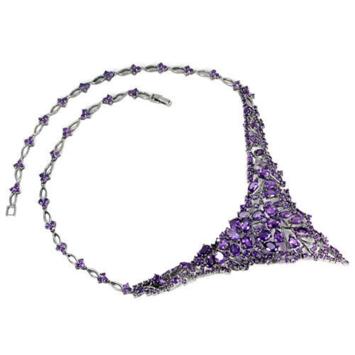 Natural PURPLE AMETHYST ROUND 925 SILVER FLOWER NECKLACE 14K BLACK GOLD COATING; LENGTH OF ITEM (Inch.)19.00;ITEM QUANTITY1STONE SHAPEMIXED SHAPESTONE DIMENSION8 X 4 MM. , 7 X 5 MM. , 5 X 3 MM. , 4 X 3 MM. , 2.7 MM. , 2.2 MM. & 1.7 MM.ITEM WEIGHT39.6 GRAMCOLORPURPLECLARITYIF - VVSLUSTERGRACEFULTREATMENTUNHEATEDORIGIN OF STONEBRAZILHARDNESS7.0