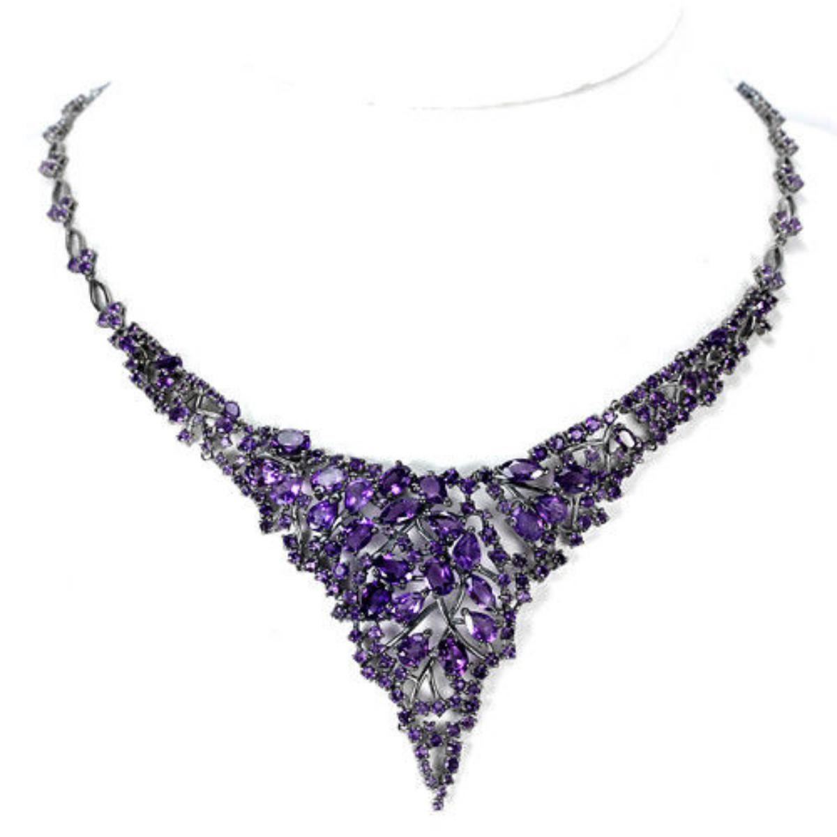 Natural PURPLE AMETHYST ROUND 925 SILVER FLOWER NECKLACE 14K BLACK GOLD COATING; LENGTH OF ITEM (Inch.)19.00;ITEM QUANTITY1STONE SHAPEMIXED SHAPESTONE DIMENSION8 X 4 MM. , 7 X 5 MM. , 5 X 3 MM. , 4 X 3 MM. , 2.7 MM. , 2.2 MM. & 1.7 MM.ITEM WEIGHT39.6 GRAMCOLORPURPLECLARITYIF - VVSLUSTERGRACEFULTREATMENTUNHEATEDORIGIN OF STONEBRAZILHARDNESS7.0