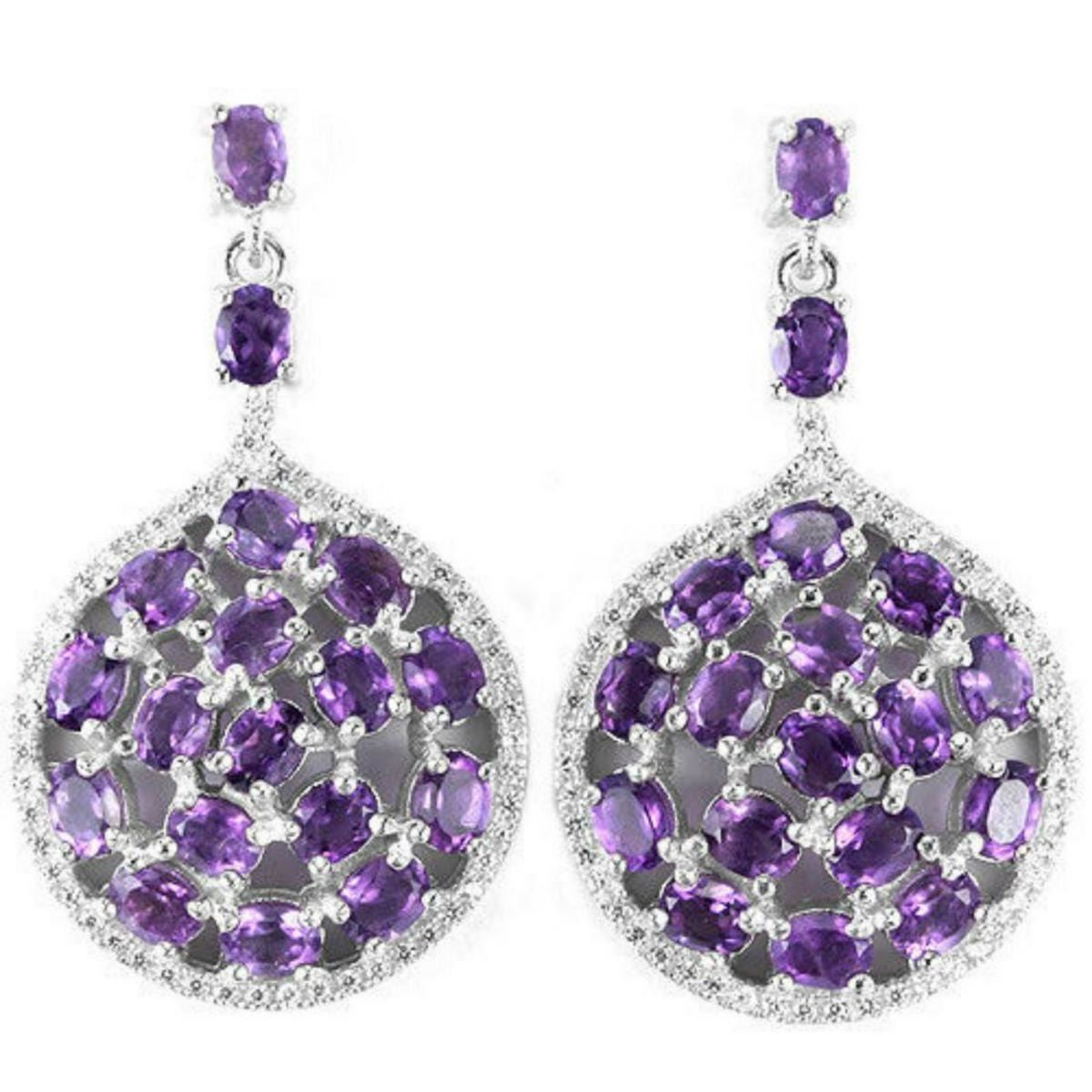 NATURAL AAA PURPLE AMETHYST WHITE CZ 925 SILVER EARRING 14K WHITE GOLD COATING; STONE SHAPEOVALSTONE DIMENSION4 X 3 MM.ITEM WEIGHT12.54 GRAMCOLORPURPLECLARITYVVS TO VSLUSTERGRACEFULTREATMENTNATURAL UNHEATEDORIGIN OF STONEBRAZILHARDNESS7;FACE OF EARRING 37 X 21 MM. WHITE CUBIC ZIRCONIA 1 MM.