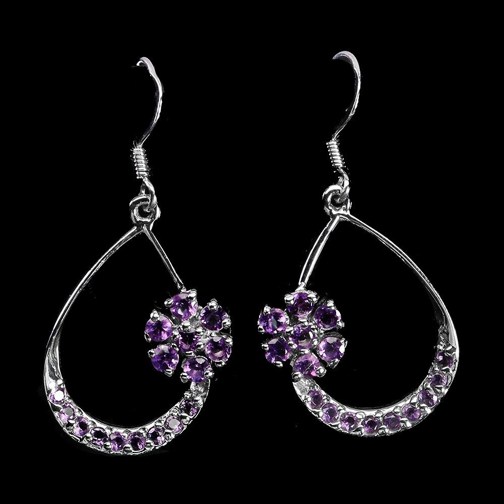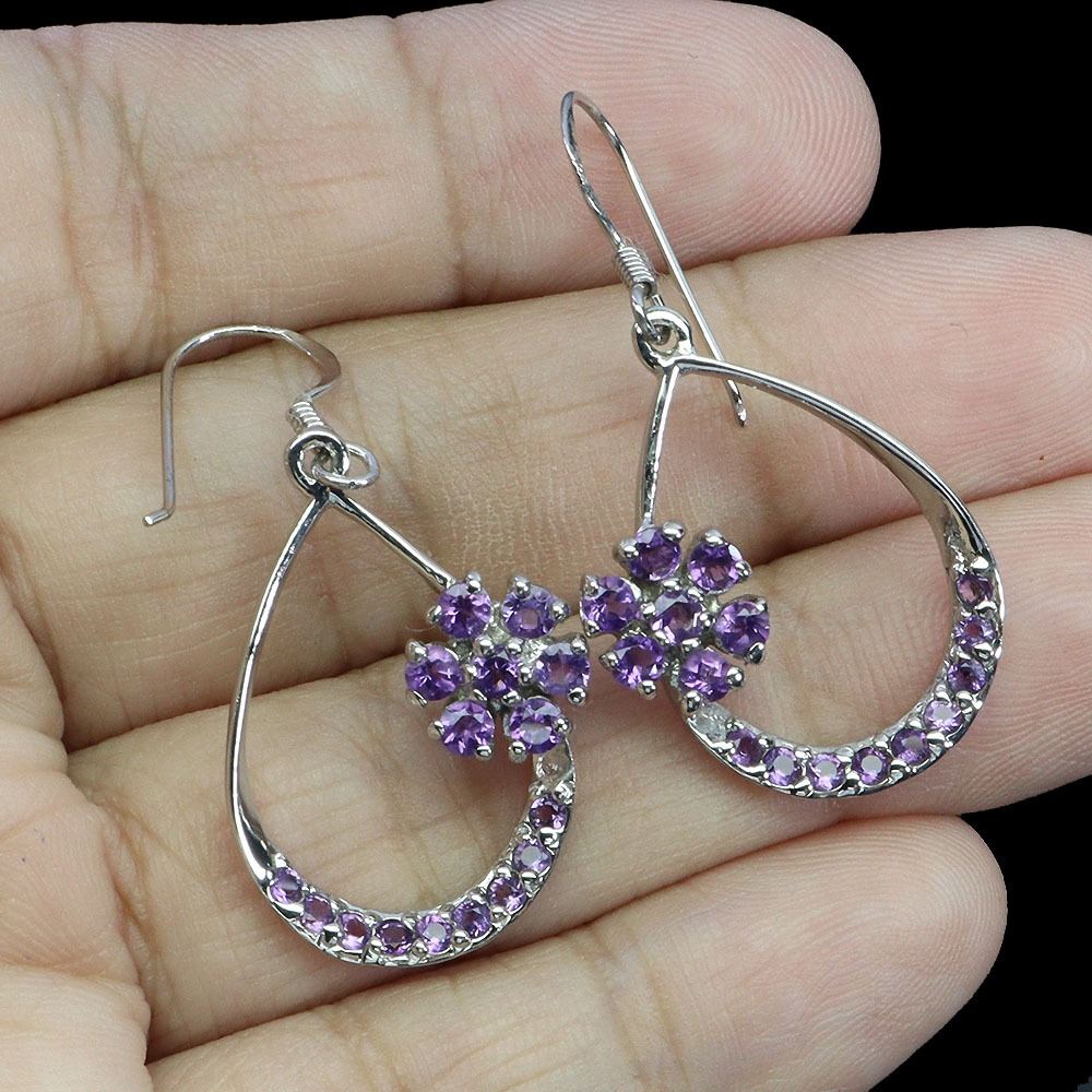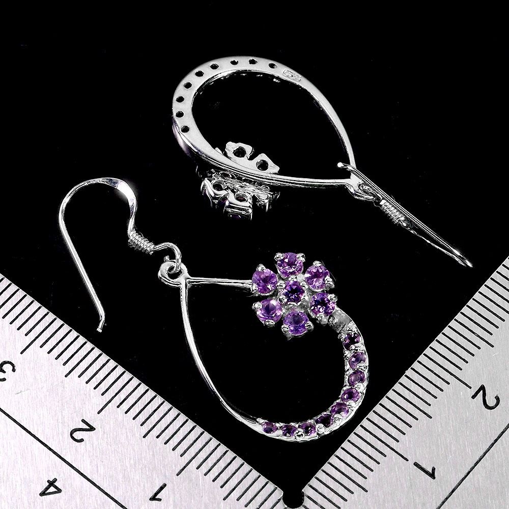 NATURAL AMETHYST EARRINGS IN 14K WHITE PLATED GOLD OVER 925 STERLING SILVER - APPRAISED REPLACEMENT VALUE