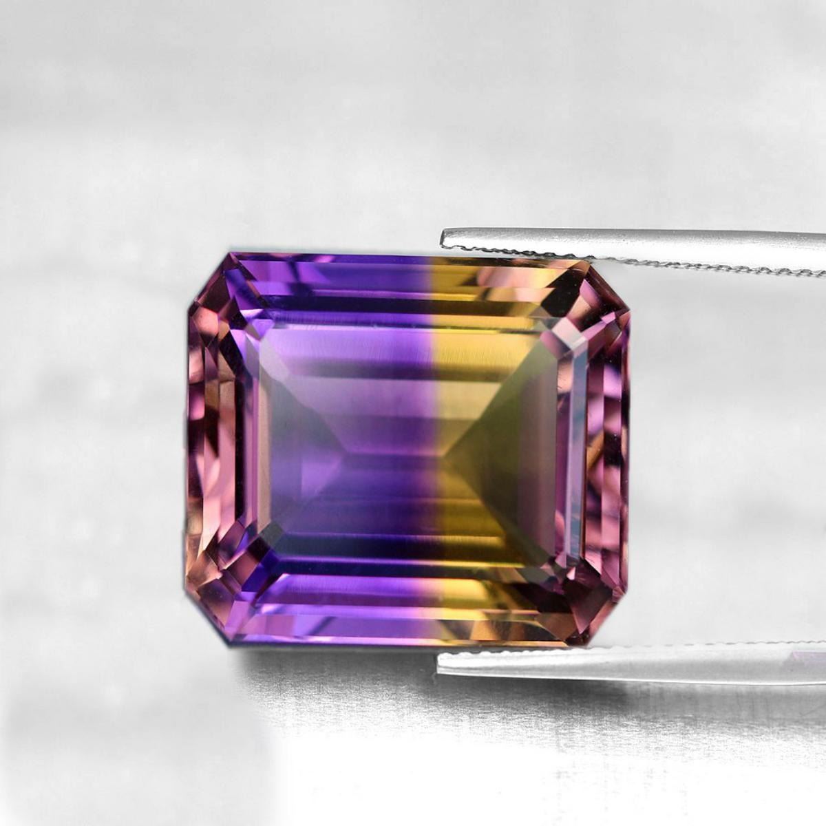 WEIGHT : 9.77 ctsSTONE NAME : Natural Ametrine (Bolivianite)SIZE ( L x W x D ) : 13.17 x 11.10 x 8.66 mmCOLOR : Purple & GoldSHAPE : OctagonQUANTITY : 1 pieceLUSTER : Excellent CLARITY : FLAWLESS-VVS BEST QUALITYHARDNESS : 7ORIGIN : Anahi Mine, Bolivia TREATMENT : 100% Natural Unheated