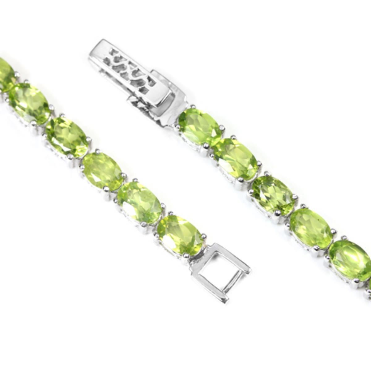 NATURAL APPLE GREEN PERIDOT 925 SILVER BRACELET14K WHITE GOLD COATING; LENGTH OF ITEM (Inch.)7.75 ;ITEM QUANTITY1STONE SHAPEOVALSTONE DIMENSION6 X 4 MM.ITEM WEIGHT12.31 GRAMCOLORAPPLE GREENCLARITYIF TO VVSLUSTERDAZZLINGTREATMENTUNHEATEDORIGIN OF STONEASIAHARDNESS6.5