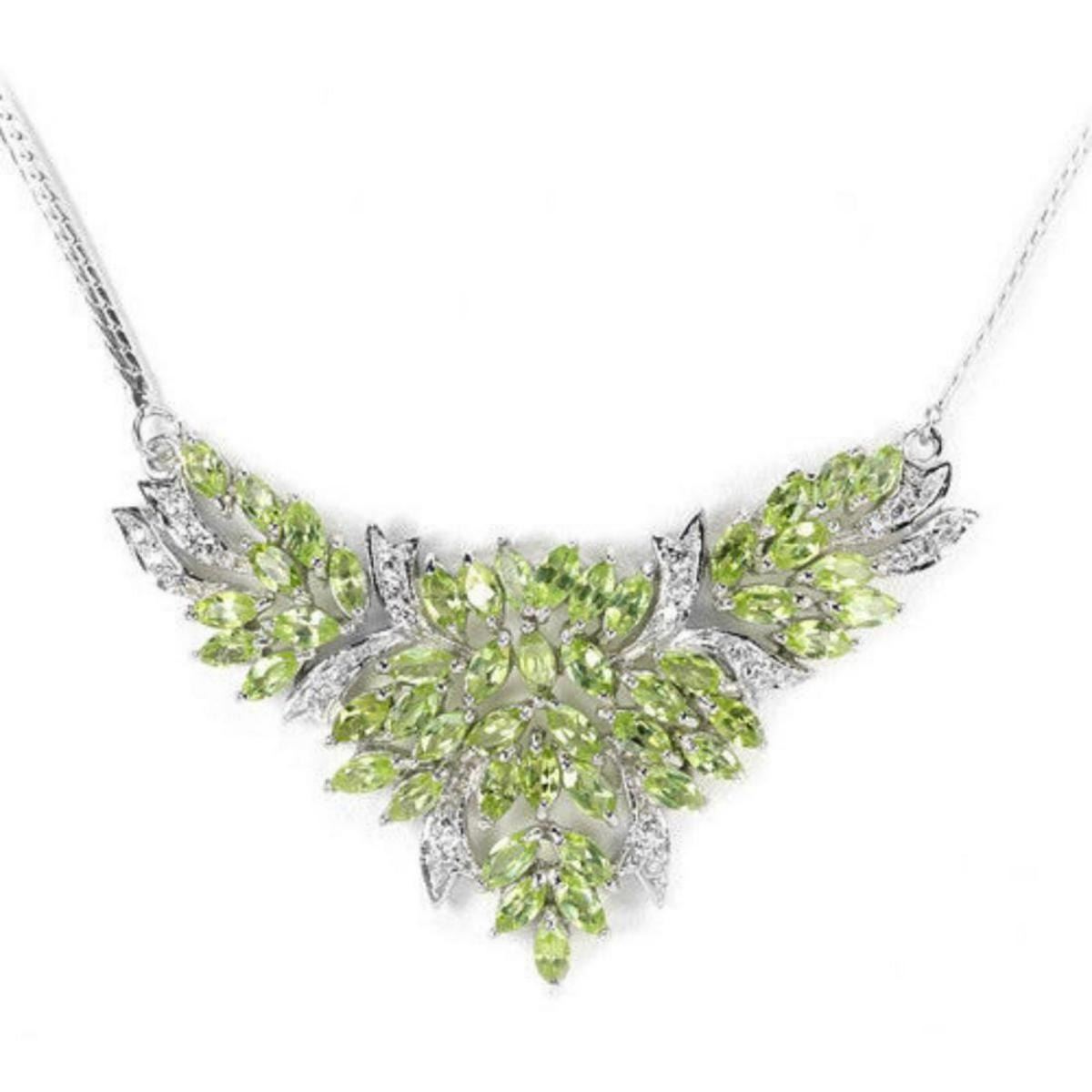 NATURAL APPLE GREEN PERIDOT & WHITE CZ 925SILVER NECKLACE 14K WHITE GOLD COATING; LENGTH OF ITEM (Inch.)17.50 ;ITEM QUANTITY1STONE SHAPEMARQUISESTONE DIMENSION5 X 2.5 MM.ITEM WEIGHT16.9 GRAMCOLORAPPLE GREENCLARITYIF - VVSLUSTERDAZZLINGTREATMENTUNHEATEDORIGIN OF STONEASIAHARDNESS6.5WHITE CUBIC ZIRCONIA 1.5 MM.