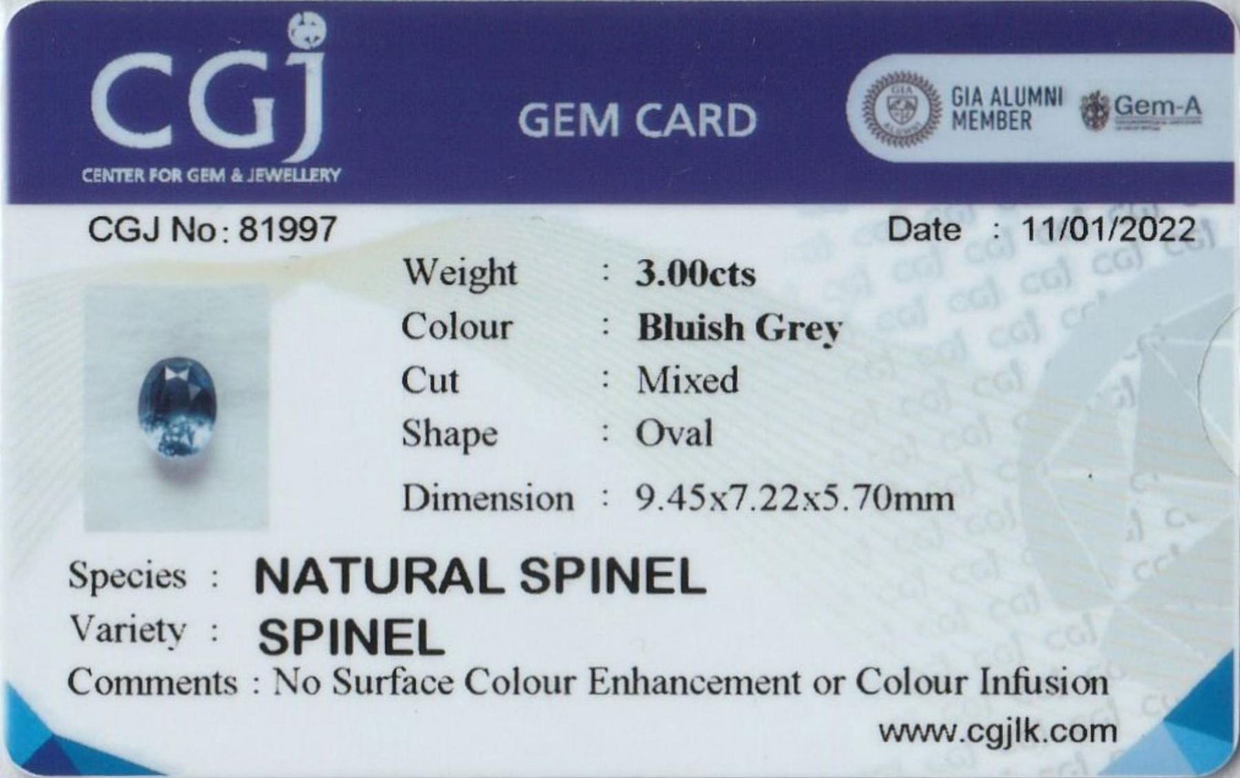 Natural Untreated Ceylon blue Spinel 3.00 Cts - VS....Oval Cut ...size 9.45 x 7.22 MM...Origin - Ceylon....