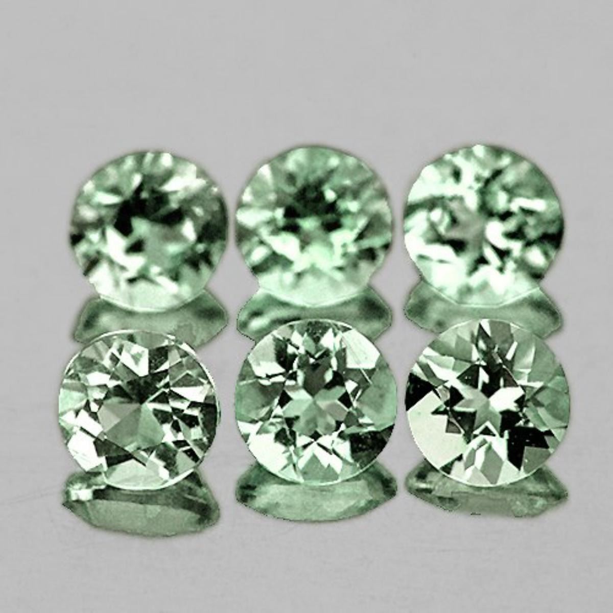 Natural AquamarineSIZE ( L x W x D ) : 4.0 mmCOLOR : GreenSHAPE : RoundQUANTITY : 6 pieces LUSTER : ExcellentCLARITY : IF-VVSHARDNESS : 8ORIGIN : Brazil TREATMENT : 100% Natural, Unheated