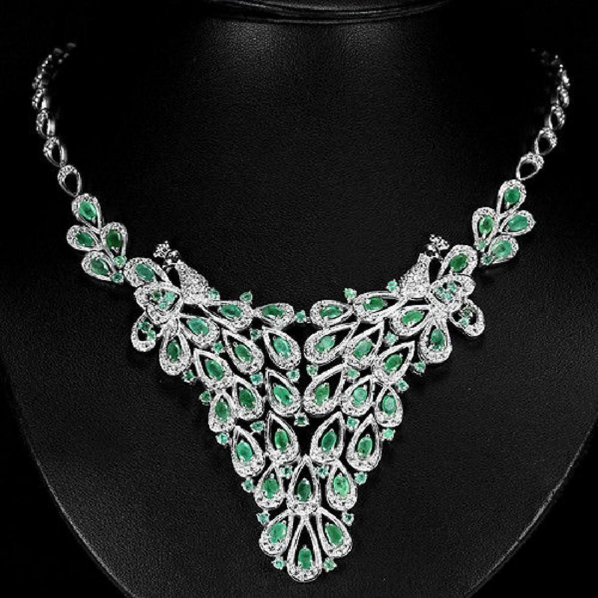 NATURAL GREEN EMERALD COLUMBIAN & CZ 925 SILVER NECKLACE 14K WHITE GOLD COATING; LENGTH OF ITEM (Inch.) ITEM QUANTITY 1 STONE SHAPE OVAL & ROUND FACET CUT STONE DIMENSION 5 X 3 MM. , 2.2 MM. ITEM WEIGHT 60.5 GRAM COLOR GREEN CLARITY TRANSLUCENT LUSTER -ENCHANTING; TREATMENT -NATURAL UNHEATED; ORIGIN OF STONE -COLUMBIA; HARDNESS -7.5; ;WHITE CUBIC ZIRCONAI 1.5 MM. , 1.2 MM.