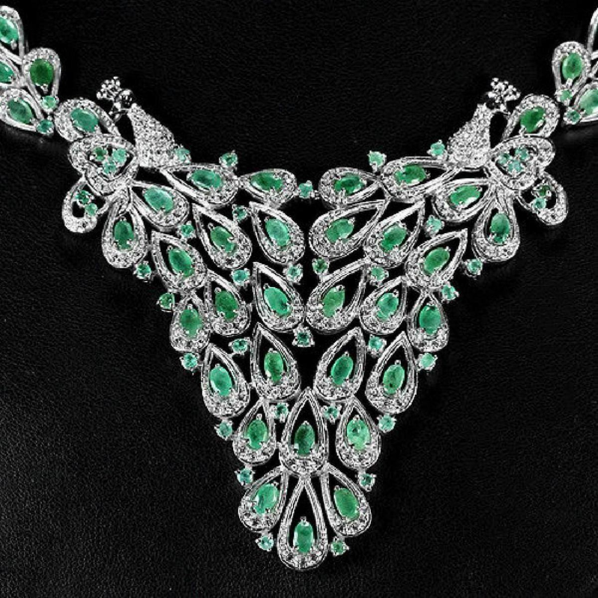 NATURAL GREEN EMERALD COLUMBIAN & CZ 925 SILVER NECKLACE 14K WHITE GOLD COATING; LENGTH OF ITEM (Inch.) ITEM QUANTITY 1 STONE SHAPE OVAL & ROUND FACET CUT STONE DIMENSION 5 X 3 MM. , 2.2 MM. ITEM WEIGHT 60.5 GRAM COLOR GREEN CLARITY TRANSLUCENT LUSTER -ENCHANTING; TREATMENT -NATURAL UNHEATED; ORIGIN OF STONE -COLUMBIA; HARDNESS -7.5; ;WHITE CUBIC ZIRCONAI 1.5 MM. , 1.2 MM.