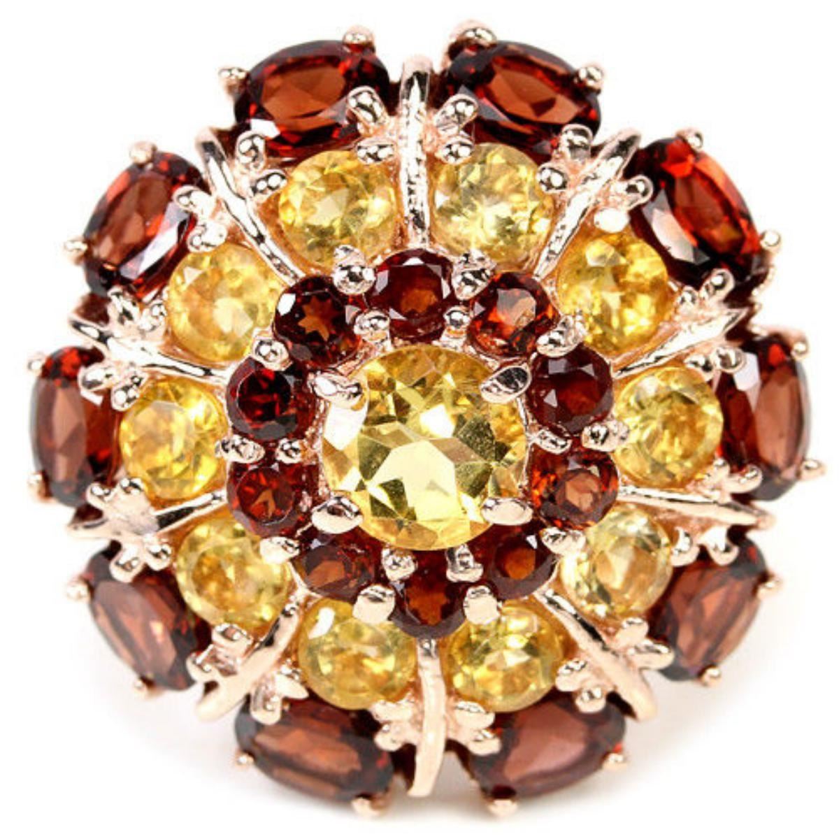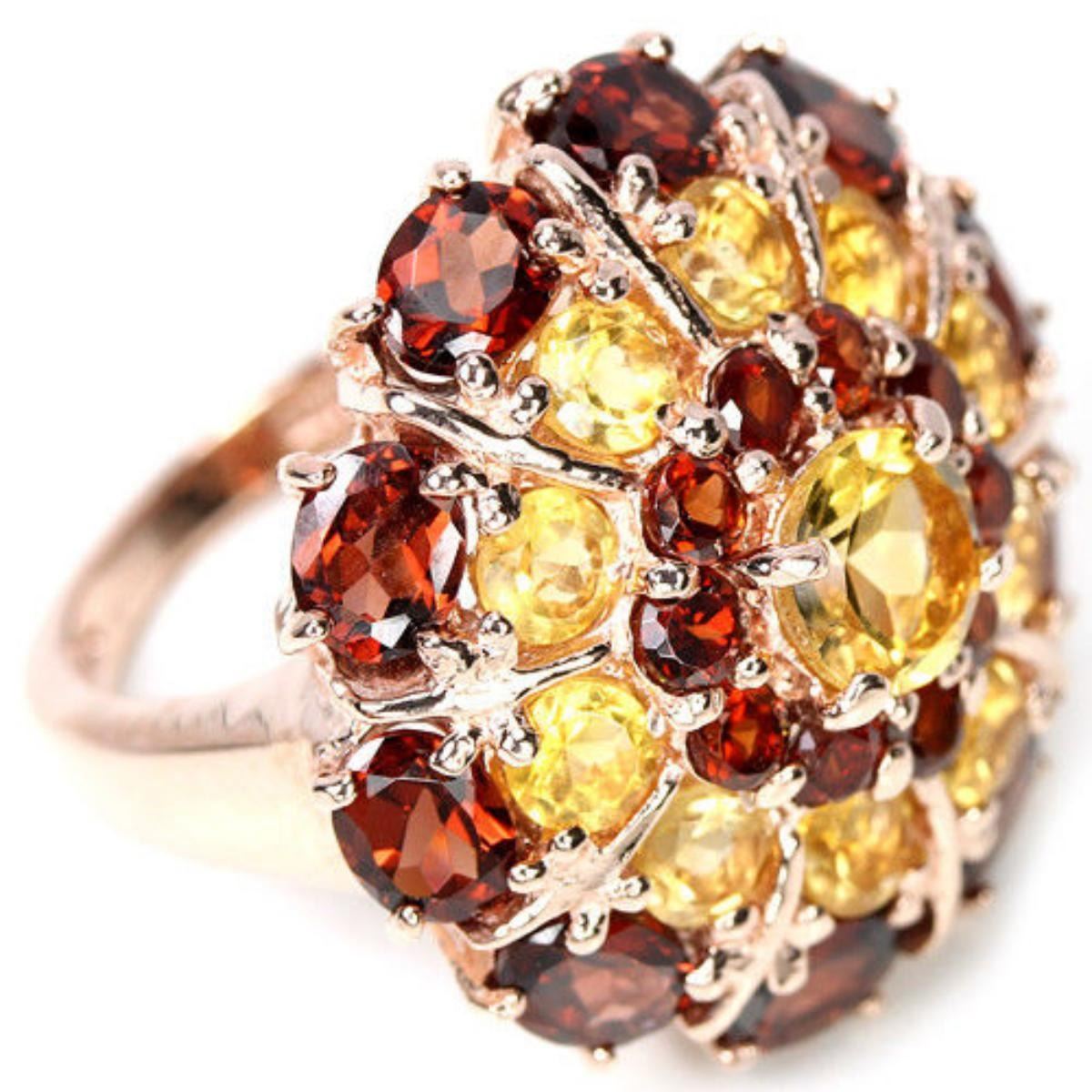 NATURAL DARK ORANGE RED GARNET CITRINE 925 SILVER RING 14K PINK GOLD COATING; RING SIZE 6.25 ( can be resized ) ITEM QUANTITY 1 STONE SHAPE -ROUND OVAL PORTUGUESE CUT; STONE DIMENSION -6.1 MM. , 5 X 4 MM. , 3.5 MM. 2.7 MM.; ITEM WEIGHT -8.9 GRAM; COLOR -MULTI COLOR; CLARITY -IF, VVS - VS; LUSTER -DAZZLING; TREATMENT -UNHEATED; ORIGIN OF STONE -CAMBODIA BRAZIL; HARDNESS -7.0 - 7.5 ; FACE OF RING 24 X 24 MM.