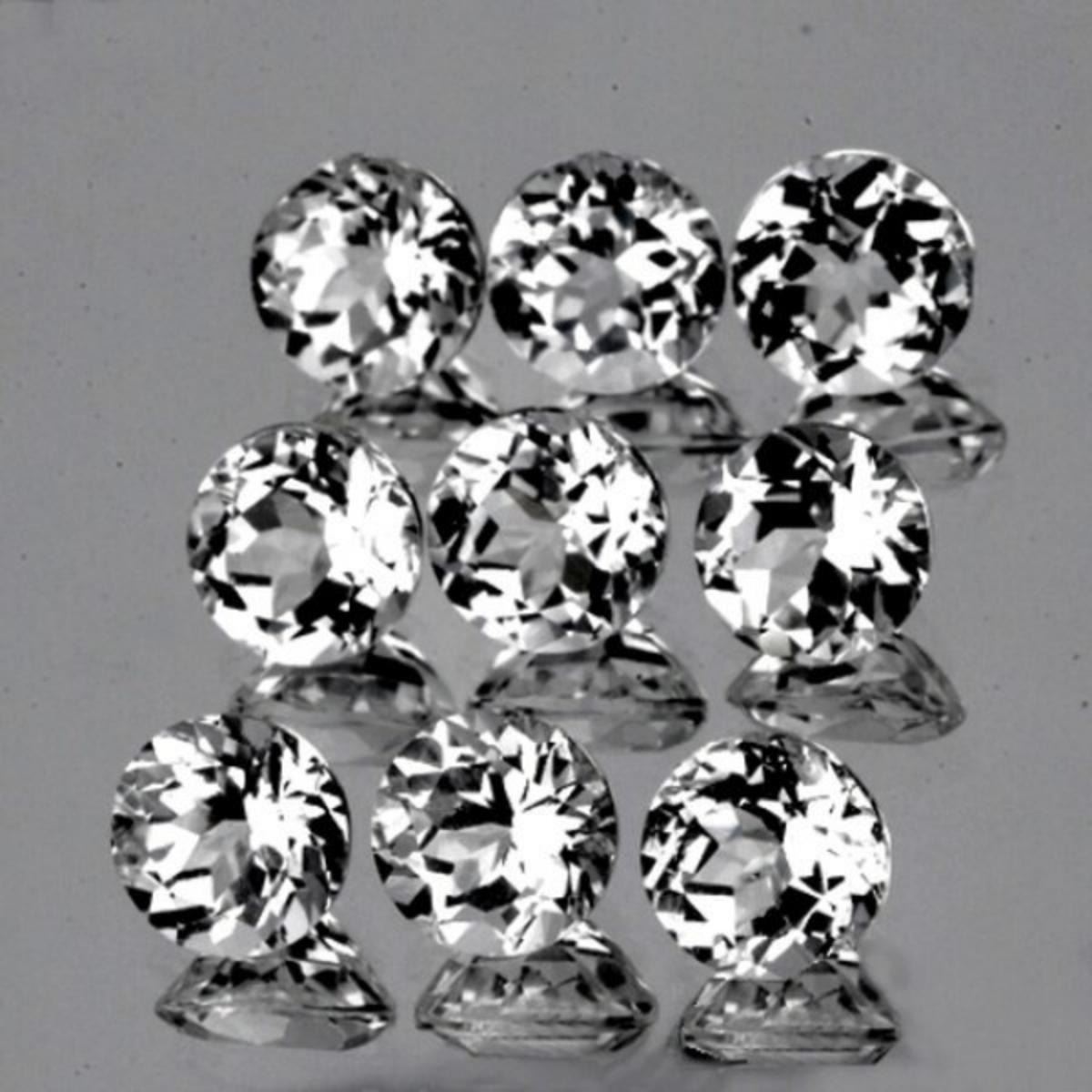Natural White TopazSIZE ( L x W x D ) : 5.00 mm;COLOR : Top Diamond Colorless White;SHAPE : Round;QUANTITY : 9 pieces;LUSTER : Excellent;CLARITY : FLAWLESS-VVS1; BEST QUALITYHARDNESS : 8;ORIGIN : Brazil; TREATMENT : None;