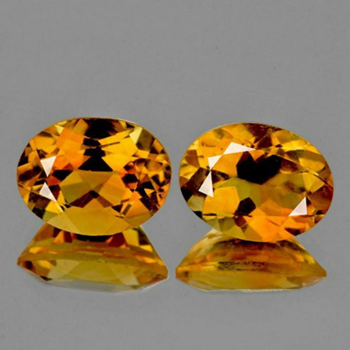 Natural CitrineSIZE ( L x W x D ) : 9x7 mmCOLOR : Golden Yellow OrangeSHAPE : OvalQUANTITY : 2 pieces LUSTER : Excellent CLARITY : IF-VVS1 HIGH QUALITYHARDNESS : 7ORIGIN : Brazil TREATMENT : 100% Natural Unheated
