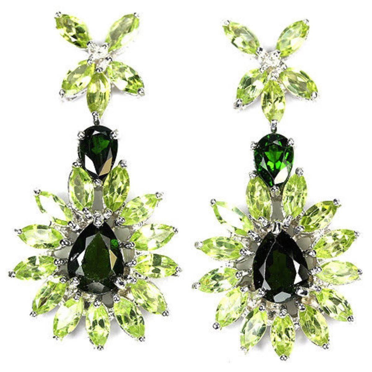 NATURAL CHROME DIOPSIDE & PERIDOT 925 SILVER EARRING 14K WHITE GOLD COATING; STONE SHAPEPEAR & MARQUISE PORTUGUESE CUTSTONE DIMENSION8 X 6 MM. , 6 X 4 MM. & 5 X 2.5 MM.ITEM WEIGHT9.3 GRAMCOLORGREENCLARITYIF - VVSLUSTERDAZZLINGTREATMENTUNHEATEDORIGIN OF STONEAFRICA & ASIAHARDNESS6.5 - 7.0;FACE OF EARRING 66 X 18 MM.