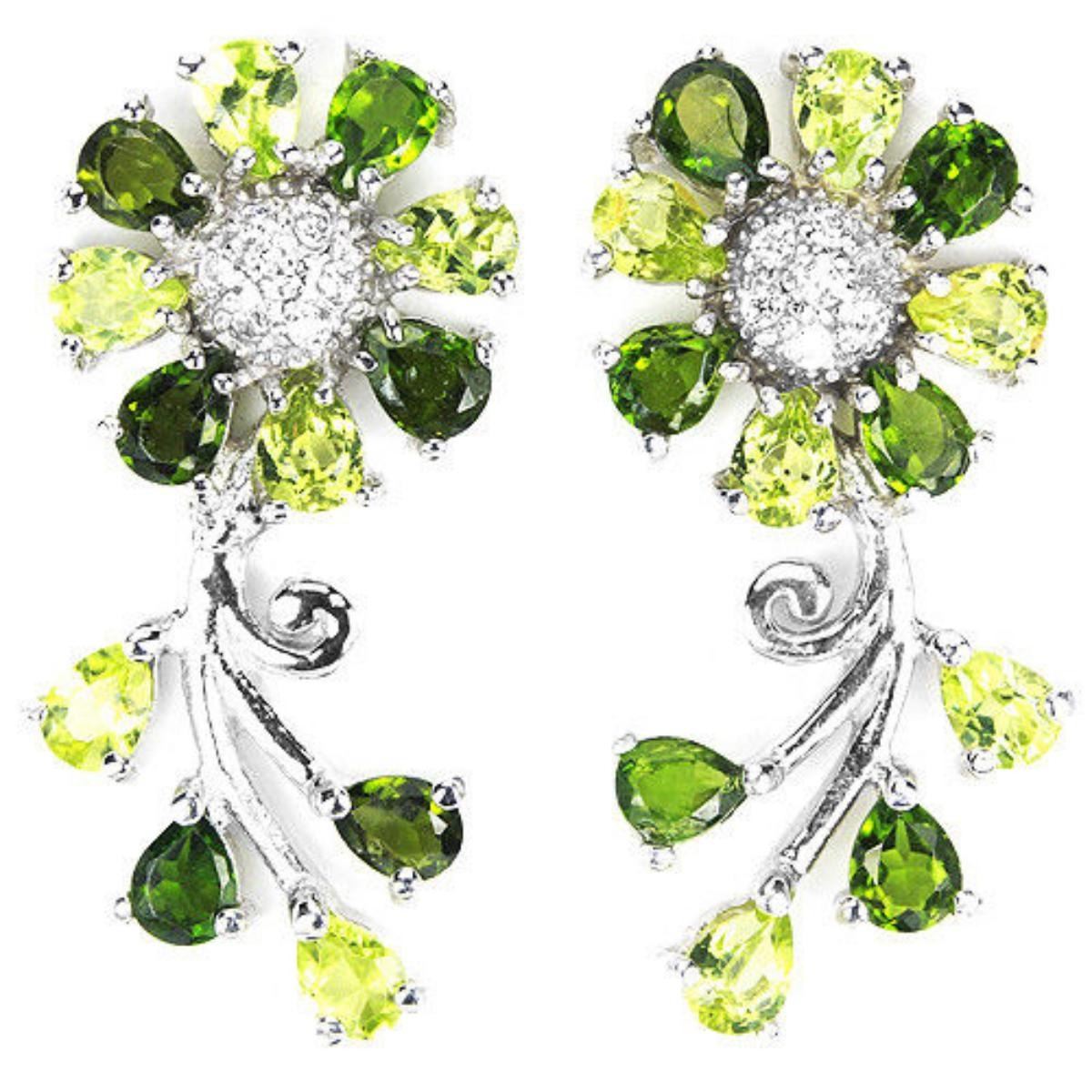 NATURAL CHROME DIOPSIDE PERIDOT CZ 925 SILVER EARRING 14K WHITE GOLD COATING; STONE SHAPE PEAR STONE DIMENSION 4 X 3 MM. ITEM WEIGHT 4.8 GRAM COLOR GREEN CLARITY VVS TO VS LUSTER RAVISHING TREATMENT NATURAL UNHEATED ORIGIN OF STONE AFRICA ASIA HARDNESS 6.5 - 7.5 FACE OF EARRING 28 X 14 MM. WHITE CUBIC ZIRCONIA 1.2 MM.