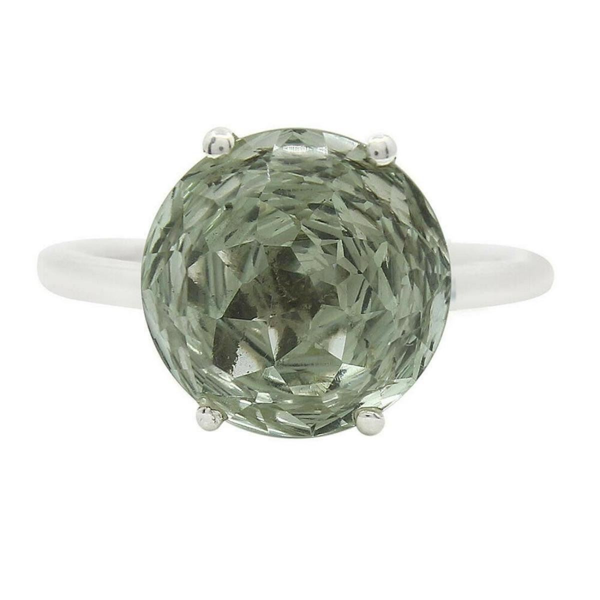 NATURAL 7 CT UNTREATED HAND CARVED GREEN AMETHYST / PRASIOLITE RING. ROUND HAND CARVED ROSE CUT MEASURING 12 x 12. EYE CLEAN . MOUNTED IN SOLID STAMPED .925 STERLING SILVER. SIZE 9. GET READY FOR THE COMPLIMENTS ON THIS RING. 3.3 TOTAL GRAMS.
