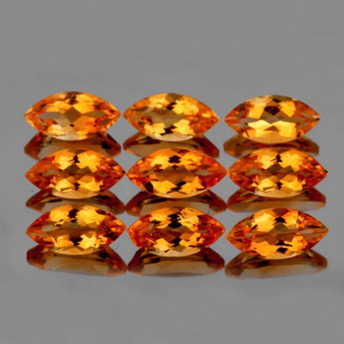 Natural CitrineSIZE ( L x W x D ) : 8 x 4 mm;COLOR : Golden Orange;SHAPE : Marquise;QUANTITY : 9 pieces ;LUSTER : Excellent ;CLARITY : IF-VVS1 HIGH QUALITYHARDNESS : 7ORIGIN : Brazil; TREATMENT : Heated