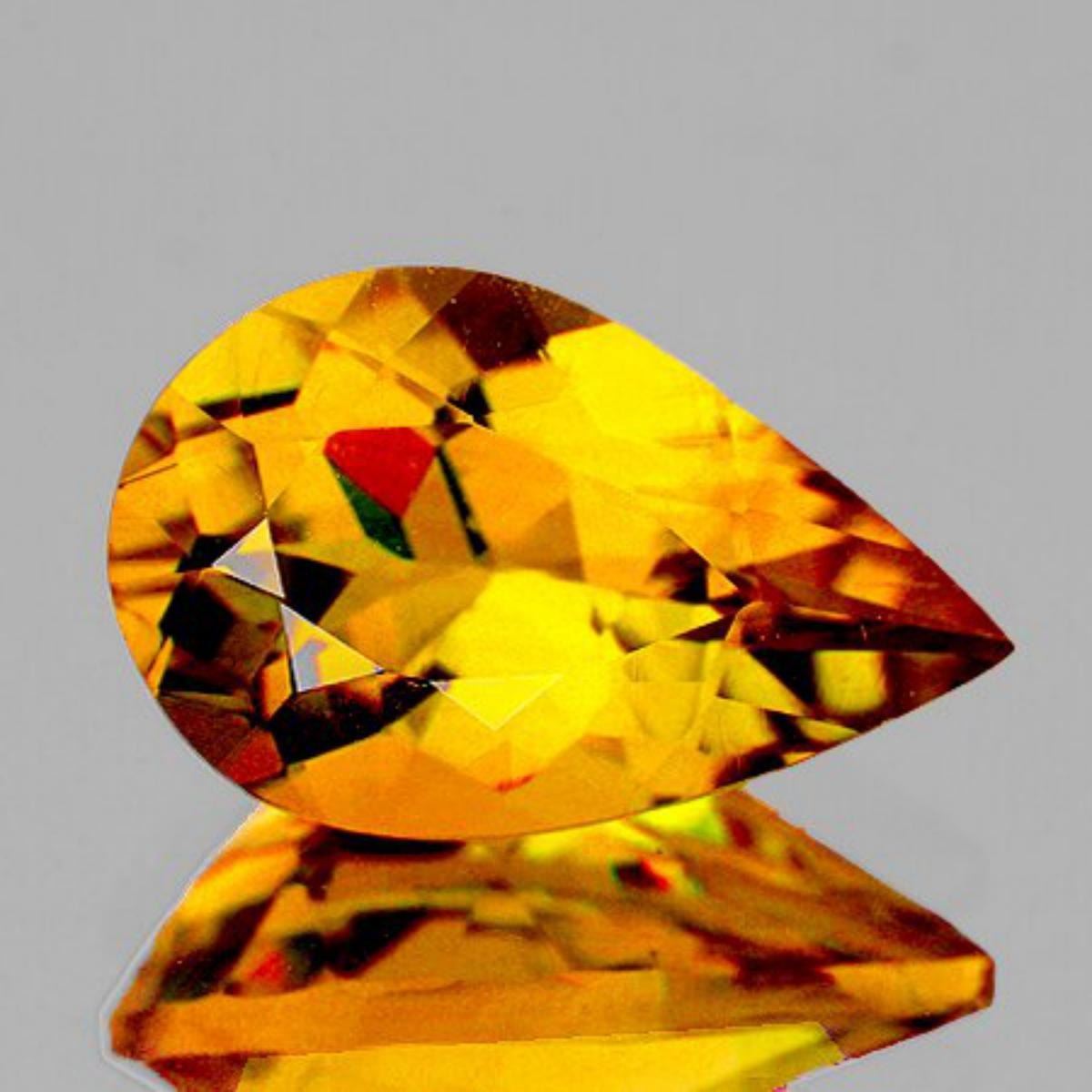 Natural CitrineSIZE ( L x W x D ) : 19.01 x 12.04 x 8.01 mmCOLOR : Intense Golden Yellow SHAPE : PearQUANTITY : 1 pieceLUSTER : Excellent CLARITY : IF-VVS1 HIGH QUALITYHARDNESS : 7ORIGIN : Brazil TREATMENT : 100% Natural Unheated