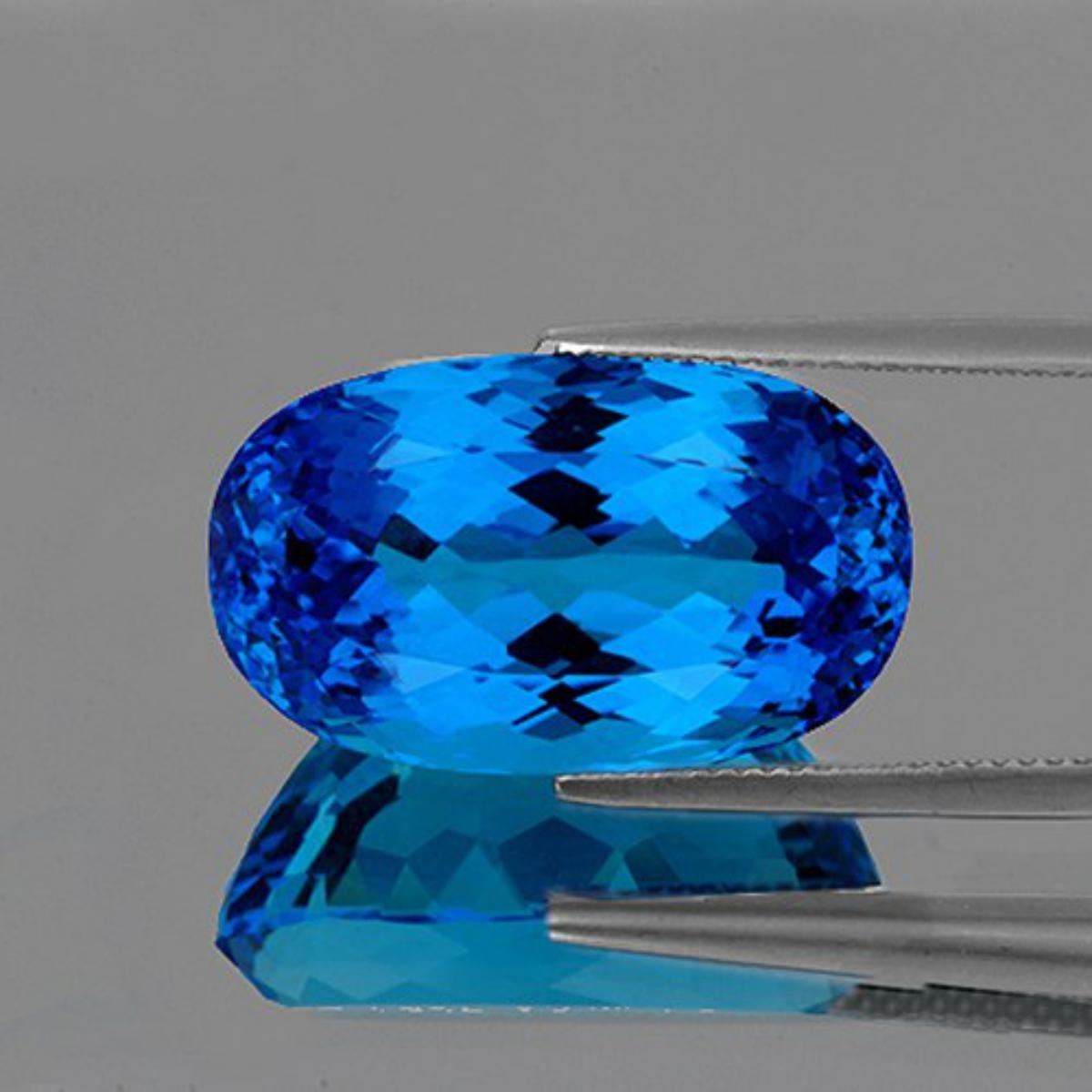 Natural TopazSIZE ( L x W x D ) : 15.50 x 9.76 x 7.26 mmCOLOR : Swiss Blue AAA ColorSHAPE : OvalQUANTITY : 1 pieceLUSTER : Excellent CLARITY : FLAWLESS-VVSHARDNESS : 8ORIGIN : Brazil TREATMENT : Standard