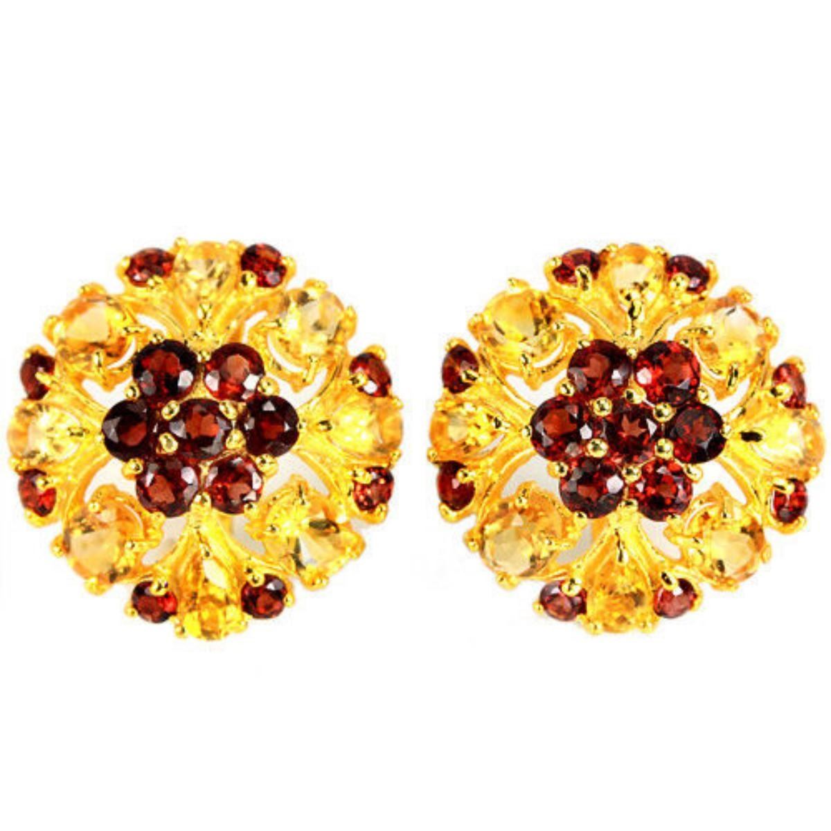 NATURAL MULTI COLOR CITRINE GARNET 925 SILVER EARRING 14K YELLOW GOLD COATING;STONE SHAPE MIXED SHAPE STONE DIMENSION 5 X 4 MM. , 5 X 3 MM. , 3.5 MM. , 3.2 MM. 2.5 MM. ITEM WEIGHT 7.82 GRAM COLOR DARK ORANGE RED ORINGISH YELLOW CLARITY IF - VVS LUSTER ALLURING TREATMENT NATURAL UNHEATED ORIGIN OF STONE BRAZIL CAMBODIA HARDNESS 7.0 - 7.5 ; FACE OF EARRING 20 X 20 MM.