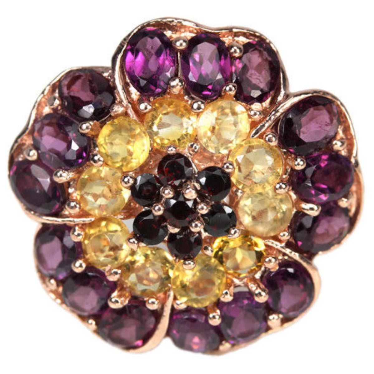 MULTI COLOR CITRINE RHODOLITE GARNET 925 SILVER RING 14K PINK GOLD COATING; LENGTH OF ITEM (Inch.)7.75 ( can be resized )ITEM QUANTITY1STONE SHAPEOVAL & ROUND PORTUGESE CUTSTONE DIMENSION4 X 3 MM. , 3 MM. & 2 MM.ITEM WEIGHT4.9 GRAMCOLORMULTI COLORCLARITYIF, VVS - VSLUSTERDAZZLINGTREATMENTUNHEATEDORIGIN OF STONEBRAZIL & AFRICAHARDNESS7.0 - 7.5FACE OF RING 21 X 21 MM.