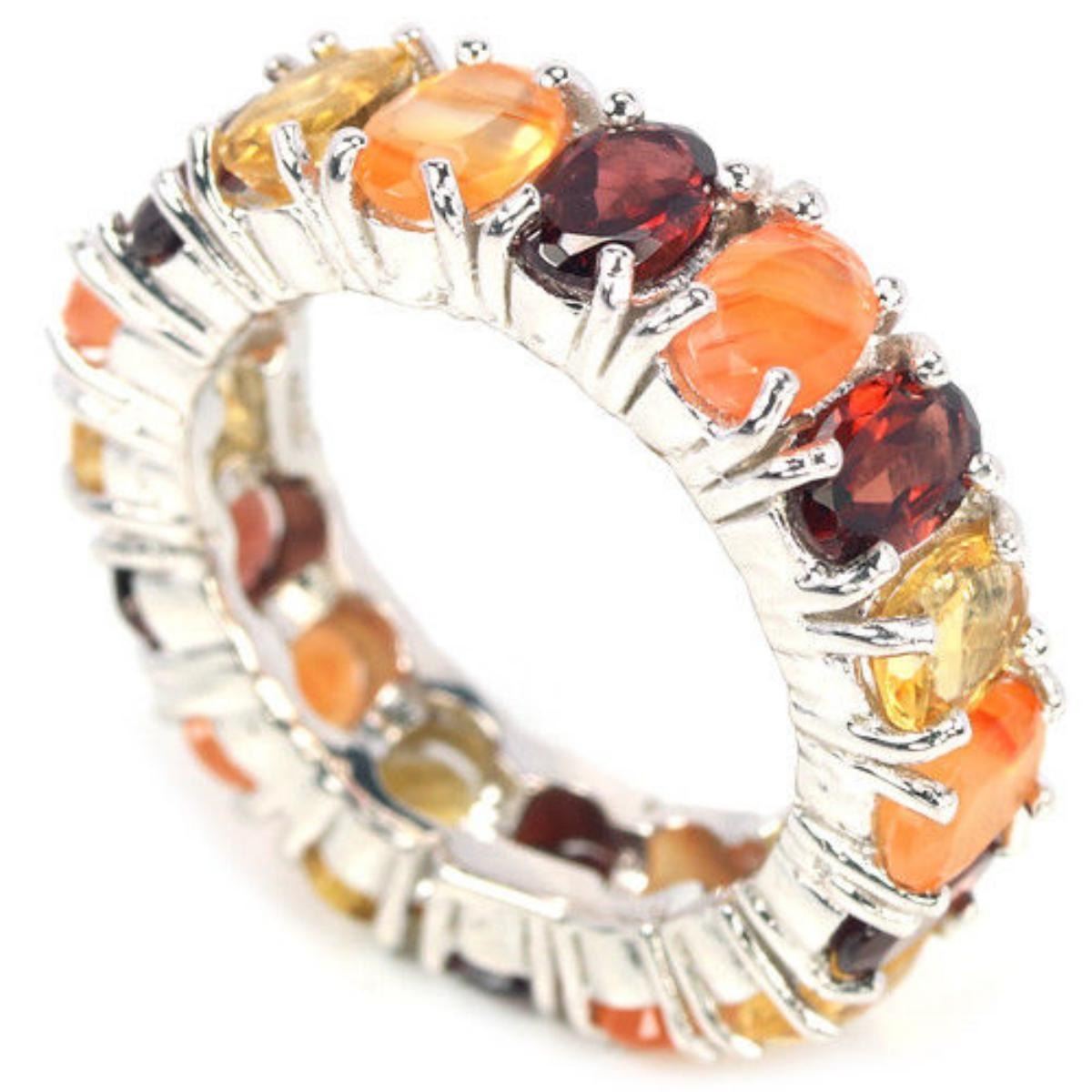 MULTI COLOR FIRE OPAL GARNET CITRINE 925 SILVER RING 14K WHITE GOLD COATING; RING SIZE, 7.50; ITEM QUANTITY 1 STONE SHAPE OVAL PORTUGUESE CUT STONE DIMENSION 6 X 4 MM. ITEM WEIGHT 7.22 GRAM COLOR MULTI COLOR CLARITY TRANSLUCENT IF-VVS LUSTER ENCHANTING TREATMENT NATURAL UNHEATED ORIGIN OF STONE AFRICA, CAMBODIA BRAZIL HARDNESS 5.5 - 7.5 FACE OF RING 27 X 6 MM.