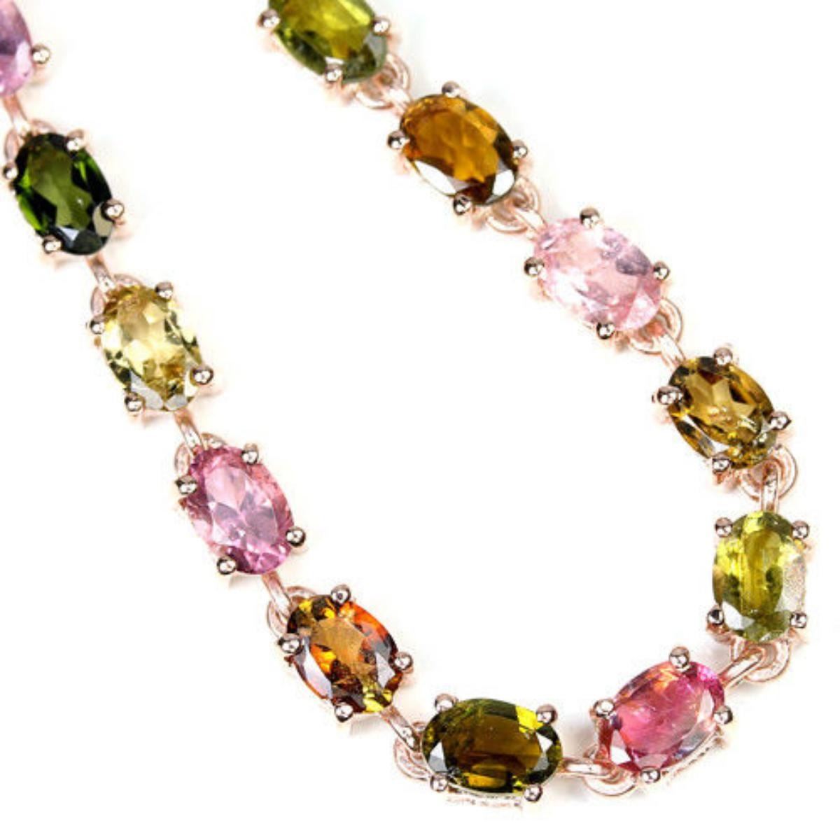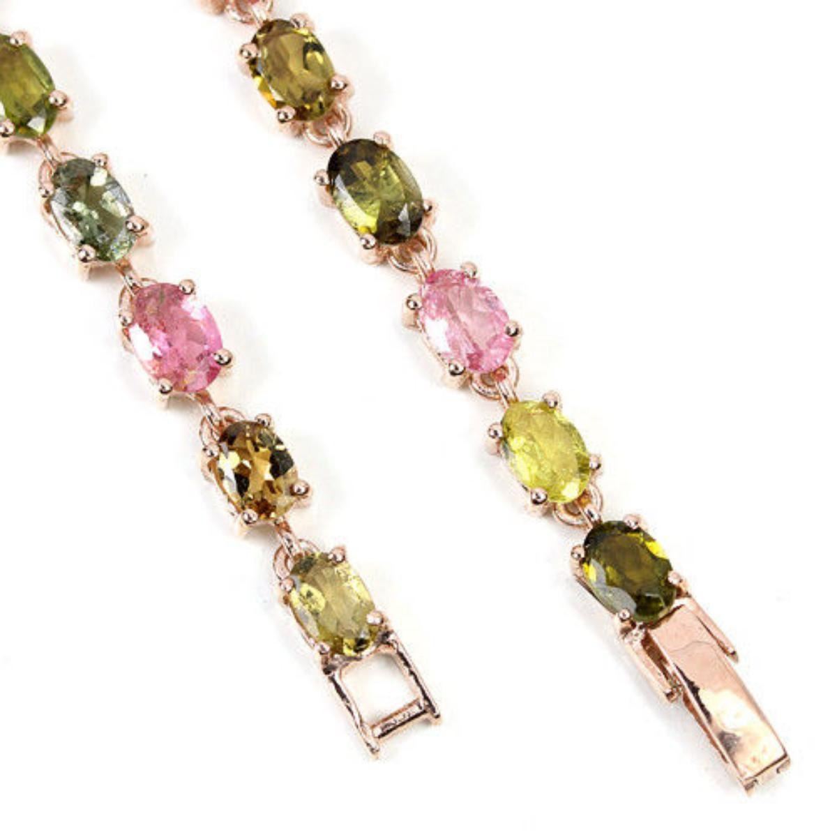 NATURAL MULTI COLOR TOURMALINE OVAL 925 SILVER BRACELET 14K PINK GOLD COATING; LENGTH OF ITEM (Inch.) 7.00 ( RESIZE : NO ) ITEM QUANTITY 1 STONE SHAPE OVAL PORTUGUESE CUT STONE DIMENSION 6 X 4 MM. ITEM WEIGHT 8.86 GRAM COLOR MULTI COLOR CLARITY VVS - VS LUSTER ALLURING TREATMENT UNHEATED ORIGIN OF STONE AFRICA HARDNESS 7.5