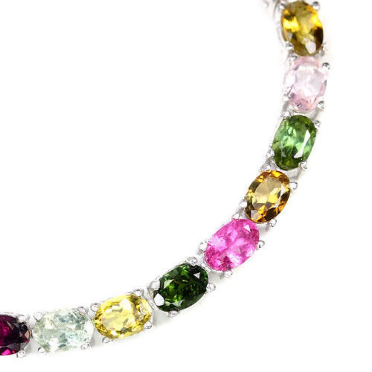 NATURAL MULTI COLOR TOURMALINE OVAL 925 SILVER BRACELET 14K WHITE GOLD COATING; LENGTH OF ITEM (Inch.)8.75;ITEM QUANTITY1STONE SHAPEOVAL PORTUGUESE CUTSTONE DIMENSION6 X 4 MM.ITEM WEIGHT10.06 GRAMCOLORMULTI COLORCLARITYVVS, VS - SILUSTERALLURINGTREATMENTUNHEATEDORIGIN OF STONEAFRICAHARDNESS7.5