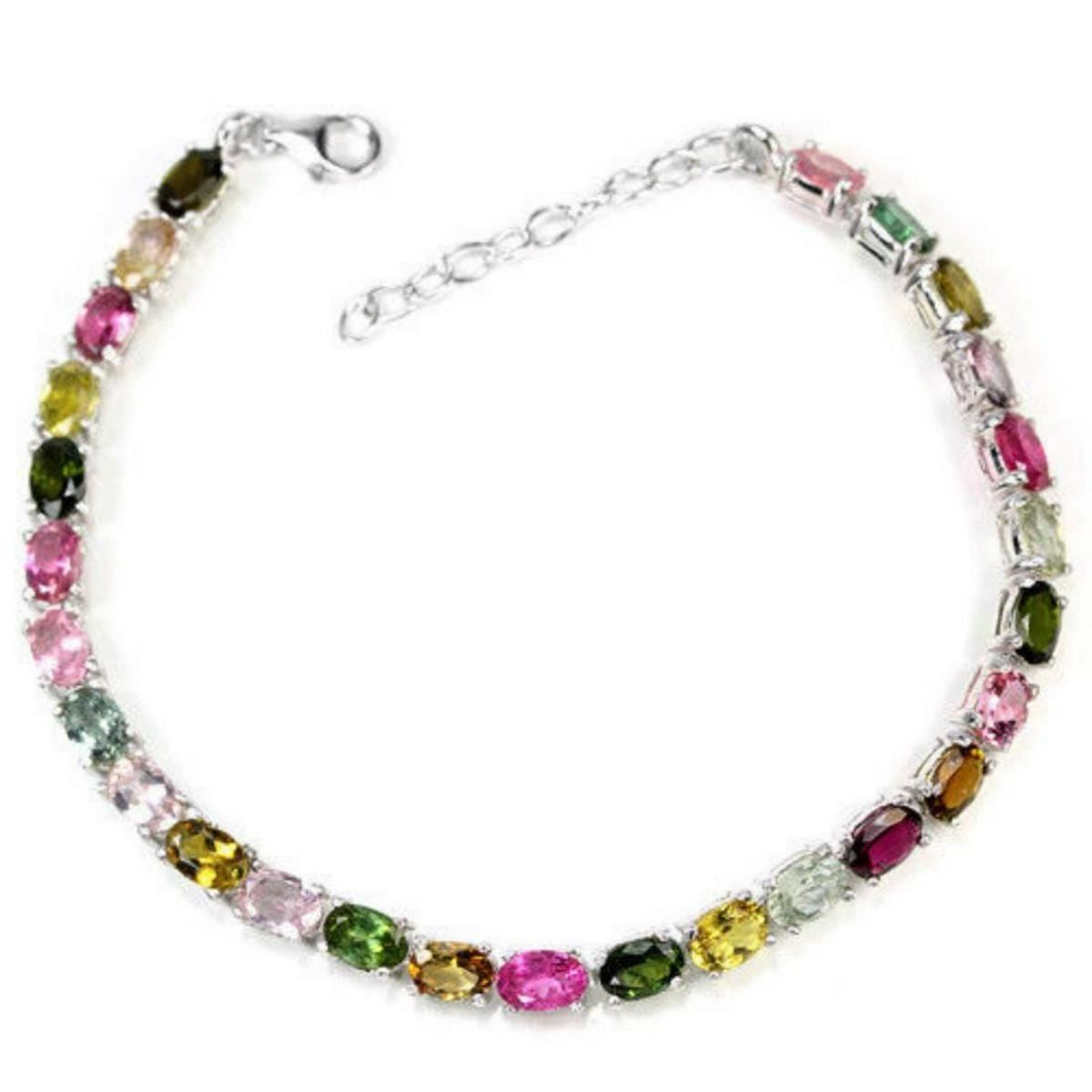 NATURAL MULTI COLOR TOURMALINE OVAL 925 SILVER BRACELET 14K WHITE GOLD COATING; LENGTH OF ITEM (Inch.)8.75;ITEM QUANTITY1STONE SHAPEOVAL PORTUGUESE CUTSTONE DIMENSION6 X 4 MM.ITEM WEIGHT10.06 GRAMCOLORMULTI COLORCLARITYVVS, VS - SILUSTERALLURINGTREATMENTUNHEATEDORIGIN OF STONEAFRICAHARDNESS7.5