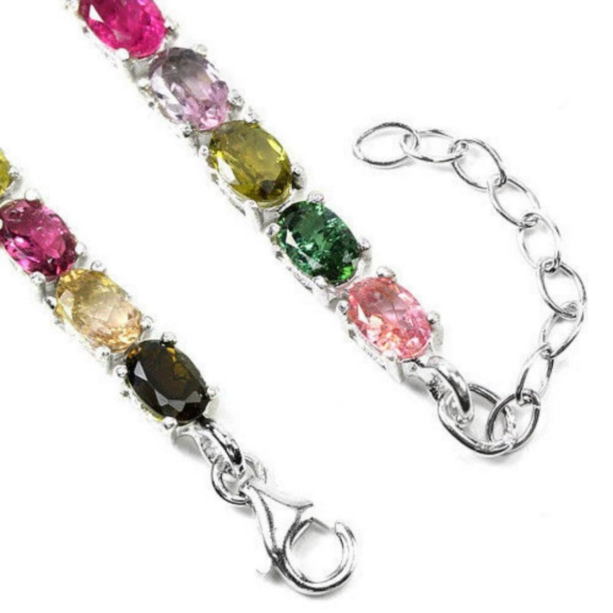 NATURAL MULTI COLOR TOURMALINE OVAL 925 SILVER BRACELET 14K WHITE GOLD COATING; LENGTH OF ITEM (Inch.)8.75;ITEM QUANTITY1STONE SHAPEOVAL PORTUGUESE CUTSTONE DIMENSION6 X 4 MM.ITEM WEIGHT10.06 GRAMCOLORMULTI COLORCLARITYVVS, VS - SILUSTERALLURINGTREATMENTUNHEATEDORIGIN OF STONEAFRICAHARDNESS7.5