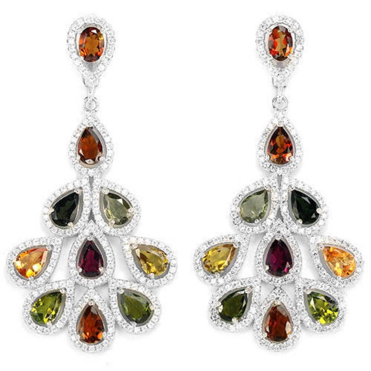 NATURAL MULTI COLOR TOURMALINE CZ 925 SILVER EARRING 14K WHITE GOLD COATING; STONE SHAPE -PEAR PORTUGUESE CUT;;; STONE DIMENSION -7 X 5 MM. 6 X 4 MM.; ITEM WEIGHT -13.31 GRAM; COLOR -MULTI COLOR; CLARITY -VVS, VS - SI; TREATMENT -UNHEATED; ORIGIN OF STONE -AFRICA; HARDNESS -7.5; FACE OF EARRING -53 X 26 MM. ; WHITE CUBIC ZIRCONIA 1 MM.
