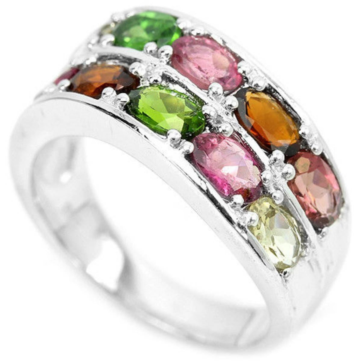 NATURAL MULTI COLOR TOURMALINE OVAL 925 SILVER RING 14K WHITE GOLD COATING; RING SIZE, 7.00 ( can be resized ) ITEM QUANTITY 1 STONE SHAPE OVAL STONE DIMENSION 5 X 3 MM. ITEM WEIGHT 6.2 GRAM COLOR MULTI COLOR CLARITY VVS VS TO SI LUSTER BEWITCHING TREATMENT NATURAL UNHEATED ORIGIN OF STONE AFRICA HARDNESS 7.5 FACE OF RING 21 X 9 MM.
