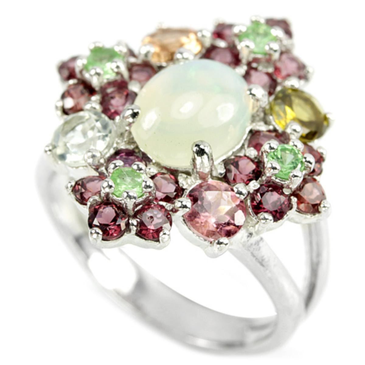 NATURAL OPAL RHODOLITE TSAVORITE GARNET 925 SILVER RING 14K WHITE GOLD COATING; RING SIZE7.00 ( can be resized )ITEM QUANTITY1STONE SHAPEOVAL CABOCHON & ROUNDSTONE DIMENSION8.9 X 7 X 3.1 MM. , 4 MM. & 2.5 MM.ITEM WEIGHT5.4 GRAMCOLORMULTI COLORCLARITYTRANLUCENT & IF VVSLUSTERDAZZLINGTREATMENTUNHEATEDORIGIN OF STONEAFRICAHARDNESS5.5 - 7.5FACE OF RIGN 23 X 21 MM.
