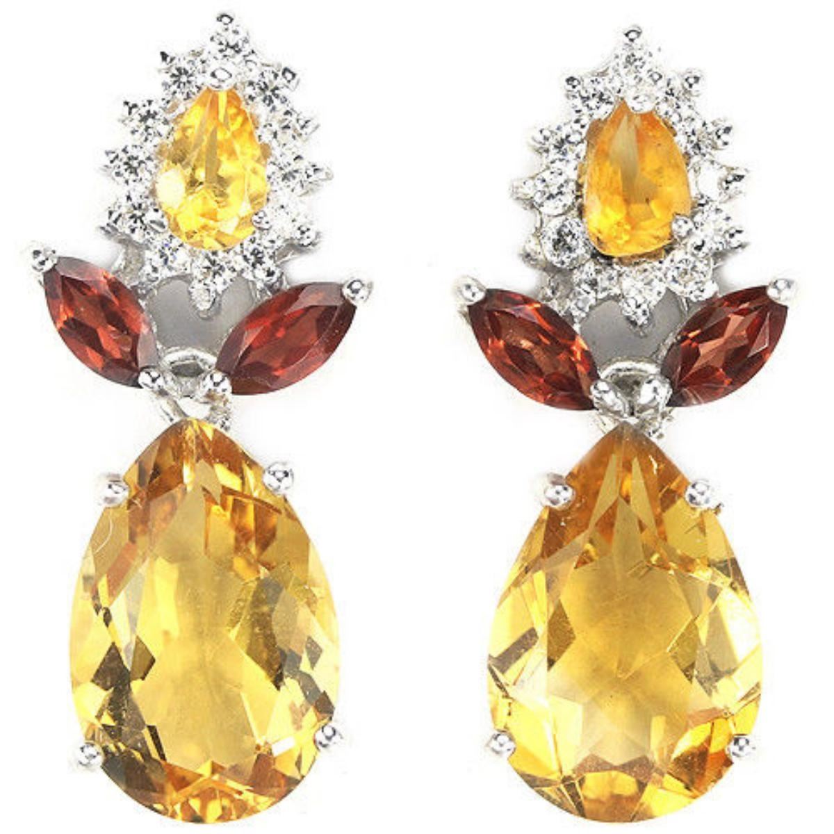 REAL ORANGISH YELLOW CITRINE GARNET CZ 925 SILVER EARRING 14K WHITE GOLD COATING; STONE SHAPE PEAR MARQUISE STONE DIMENSION 12 X 8 MM. , 5 X 3 MM. , 5 X 2.5 MM. ITEM WEIGHT 4.5 GRAM COLOR ORANGISH YELLOW DARK RED CLARITY VVS TO VS LUSTER ENCHANTING TREATMENT NATURAL UNHEATED ORIGIN OF STONE BRAZIL CAMBODIA HARDNESS 7 - 7.5 ; FACE OF PENDANT 25 X 10 MM. ; WHITE CUBIC ZIRCONIA 1.3 MM.