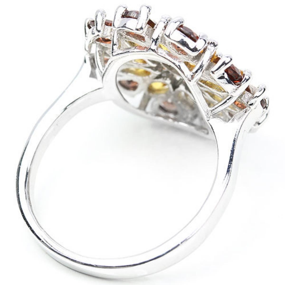 NATURAL ORANGISH YELLOW CITRINE GARNET 925 SILVER RING 14K WHITE GOLD COATING; RING SIZE, LENGTH OF ITEM (Inch.) 8.00 ( CAN BE RESIZED ) ITEM QUANTITY -1; STONE SHAPE -MIXED SHAPE; STONE DIMENSION -5 X 2.5 MM. , 4 X 3 MM. , 1.5 MM.; ITEM WEIGHT -5.39 GRAM; COLOR -ORANGISH YELLOW DRAK ORANGE RED; CLARITY -IF TO VVS; LUSTER -ENCHANTING; TREATMENT -NATURAL UNHEATED; ORIGIN OF STONE -BRAZIL CAMBODIA; HARDNESS -7 - 7.5; FACE OF RING 20 X 19 MM.