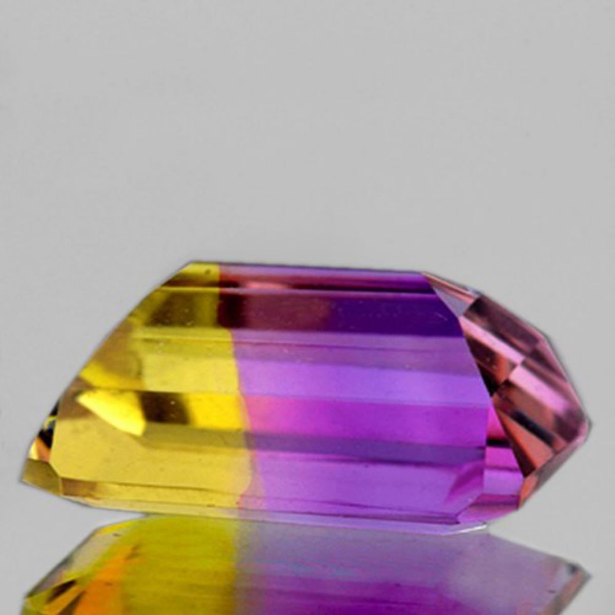 Natural Ametrine (Bolivianite)SIZE ( L x W x D ) : 16.12 x 12.14 x 7.53 mm; Weight 11.25 Cts;COLOR : Purple & Golden Premium ColorSHAPE : OctagonQUANTITY : 1 pieceLUSTER : Excellent CLARITY : FLAWLESS-VVS BEST QUALITYHARDNESS : 7ORIGIN : Anahi Mine, Bolivia TREATMENT : 100% Natural Unheated; Ametrine Properties Ametrine is actually not a single unique mineral – it’s two minerals mixed together! As you might be able to guess from its portmanteau name, these two minerals are amethyst and citrine, which are both forms of quartz. It is a highly unique blend of these two energies, and the perfect two-in-one stone for the minimalist crystologist! Ametrine is also known as trystine or bolivianite, the latter of which names is a reference to the fact that almost all ametrine today is mined in the country of Bolivia. This lovely stone embodies the energy of the above crystals, to enhance mental and spiritual clarity, while uniting masculine and feminine energies. As it is a type of quartz it will amplify the energy of the vibration of both of the stones that it is made up of. Its healing energy releases negativity from within the aura, and it aids weight loss and helps you to release your addictions. If are studying, the Citrine energy within this stone helps you to stay focused, as well as using the Amethyst vibration within it, the higher energies of the crown chakra, for inspiration.