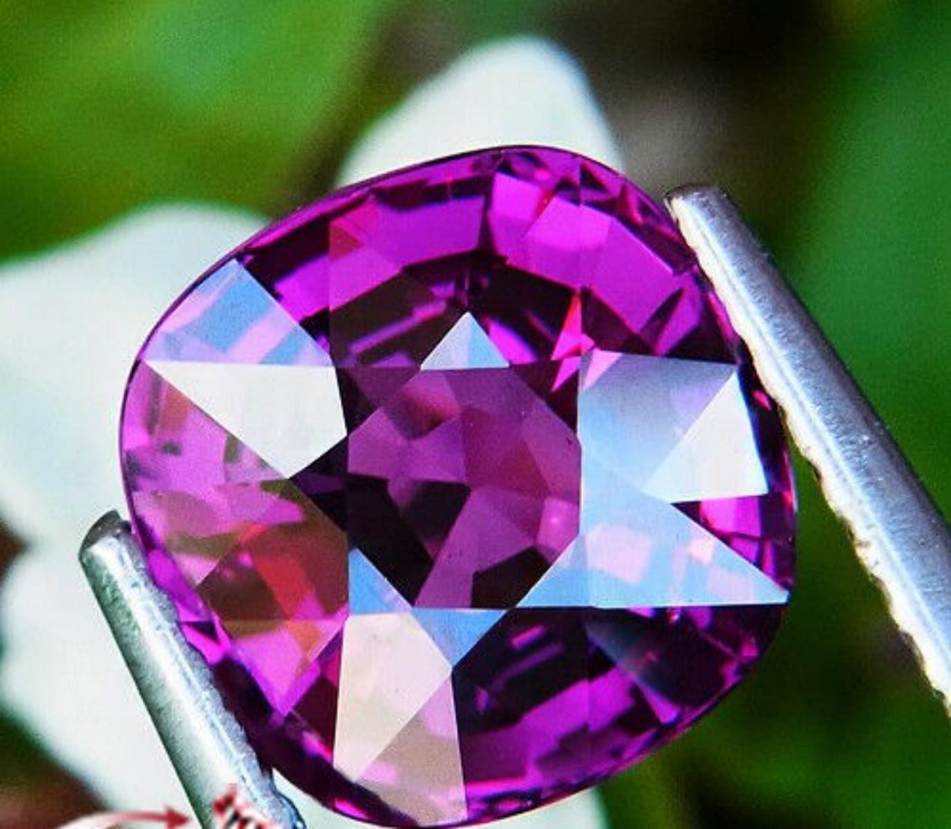 Natural Rhodolite Garnet;Color-Purple;Shape/Cut-Cushion/Brillaint;Size-8.3x8.3x5.15mm.;Weight-3.30CT;Clarity-VVS1;Natural(No treatment IN ANY WAY)Origin-Africa