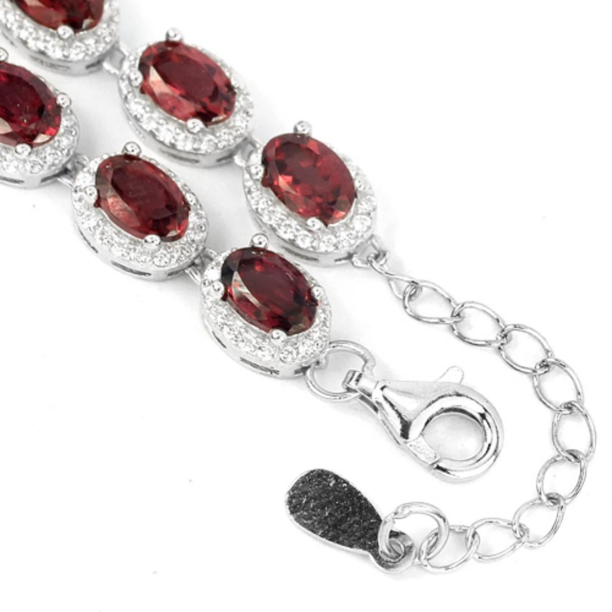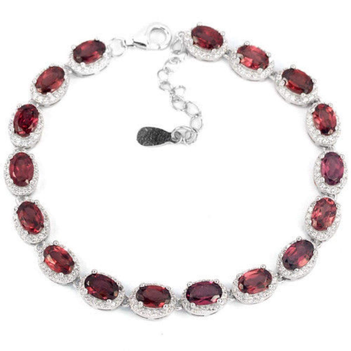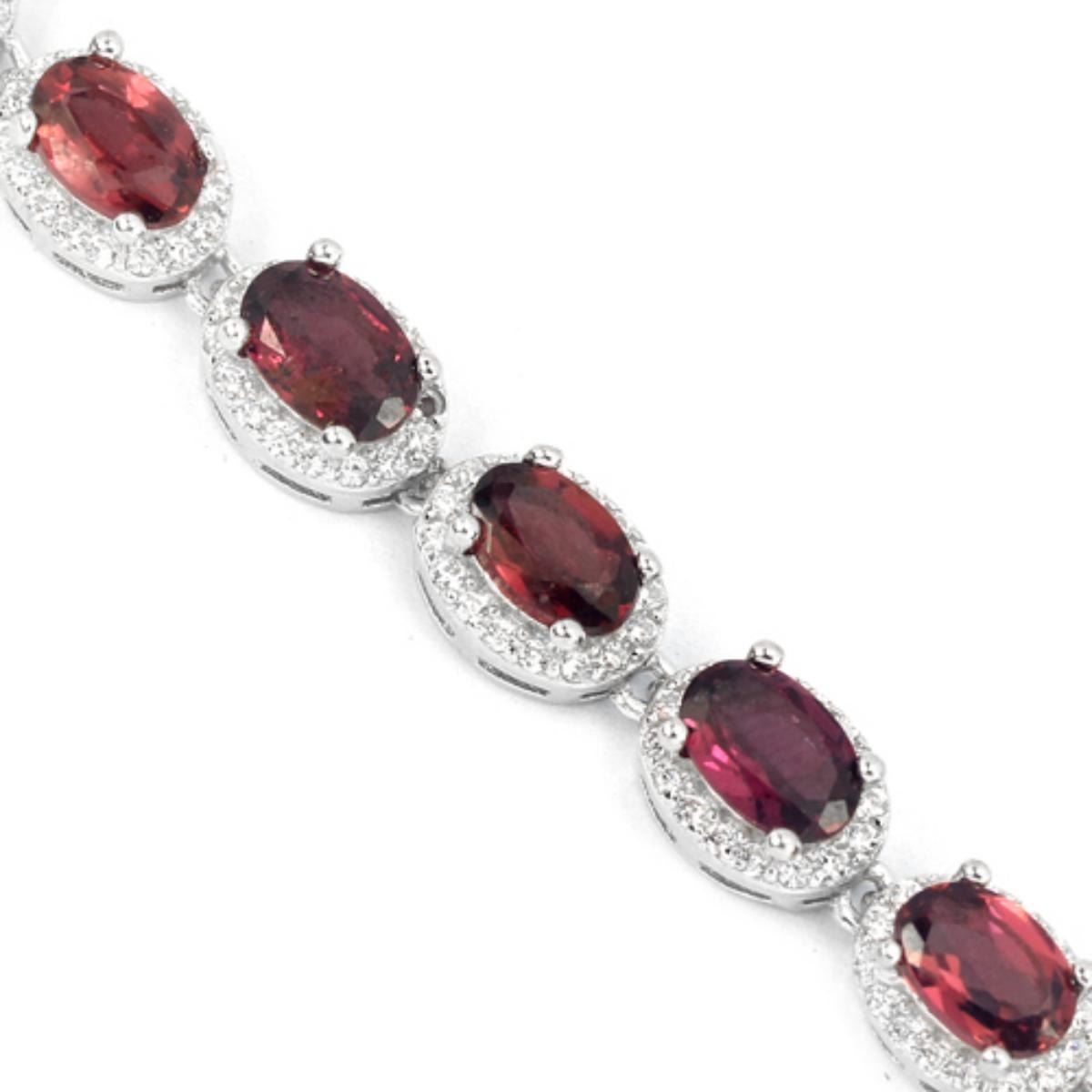 NATURAL RHODOLITE GARNET & WHITE CZ 925 SILVER BRACELET 14K WHITE GOLD COATING; LENGTH OF ITEM (Inch.)7.50 ;ITEM QUANTITY1STONE SHAPEOVALSTONE DIMENSION6 X 4 MM.ITEM WEIGHT11.63 GRAMCOLORPURPLISH PINKCLARITYIF - VVSLUSTERALLURINGTREATMENTNATURAL UNHEATEDORIGIN OF STONEAFRICAHARDNESS7.5WHITE CUBIC ZIRCONIA 1 MM.
