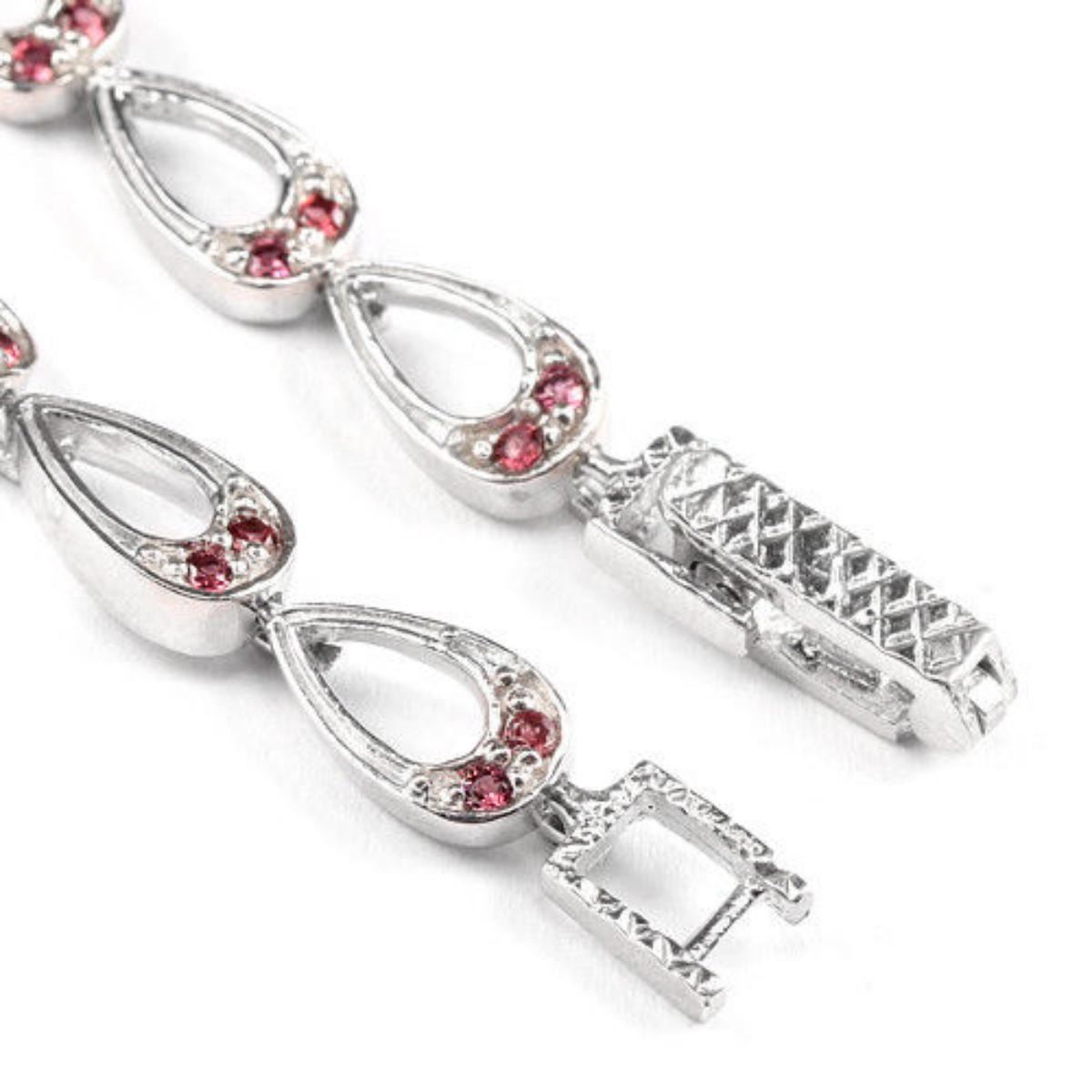 NATURAL PURPLISH PINK RHODOLITE & CZ 925 SILVER NECKLACE 14K WHITE GOLD COATING;LENGTH OF ITEM (Inch.)16.75;ITEM QUANTITY1STONE SHAPEPEAR & ROUNDSTONE DIMENSION5 X 4 MM. , 2.2 MM. & 1.5 MM.ITEM WEIGHT59.1 GRAMCOLORPURPLISH PINKCLARITYIF - VVSLUSTERDAZZLINGTREATMENTUNHEATEDORIGIN OF STONEAFRICAHARDNESS7.5WHITE CUBIC ZIRCONIA 1.2 MM.