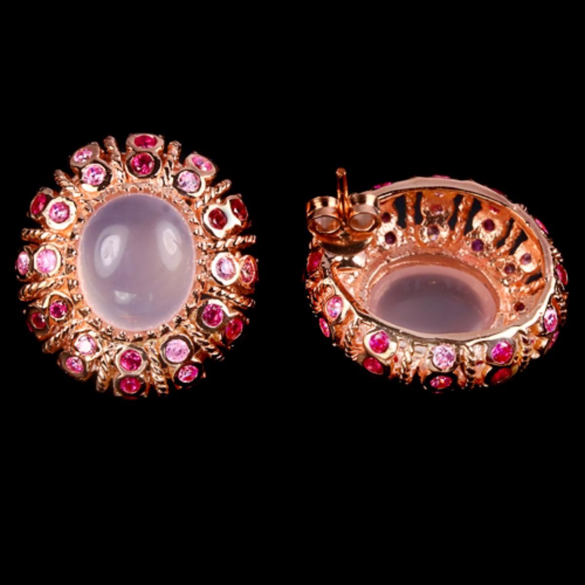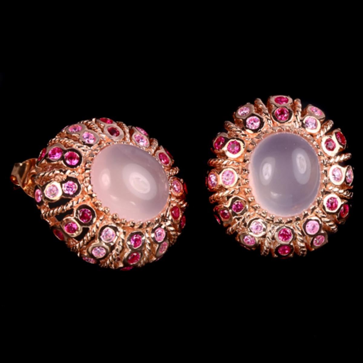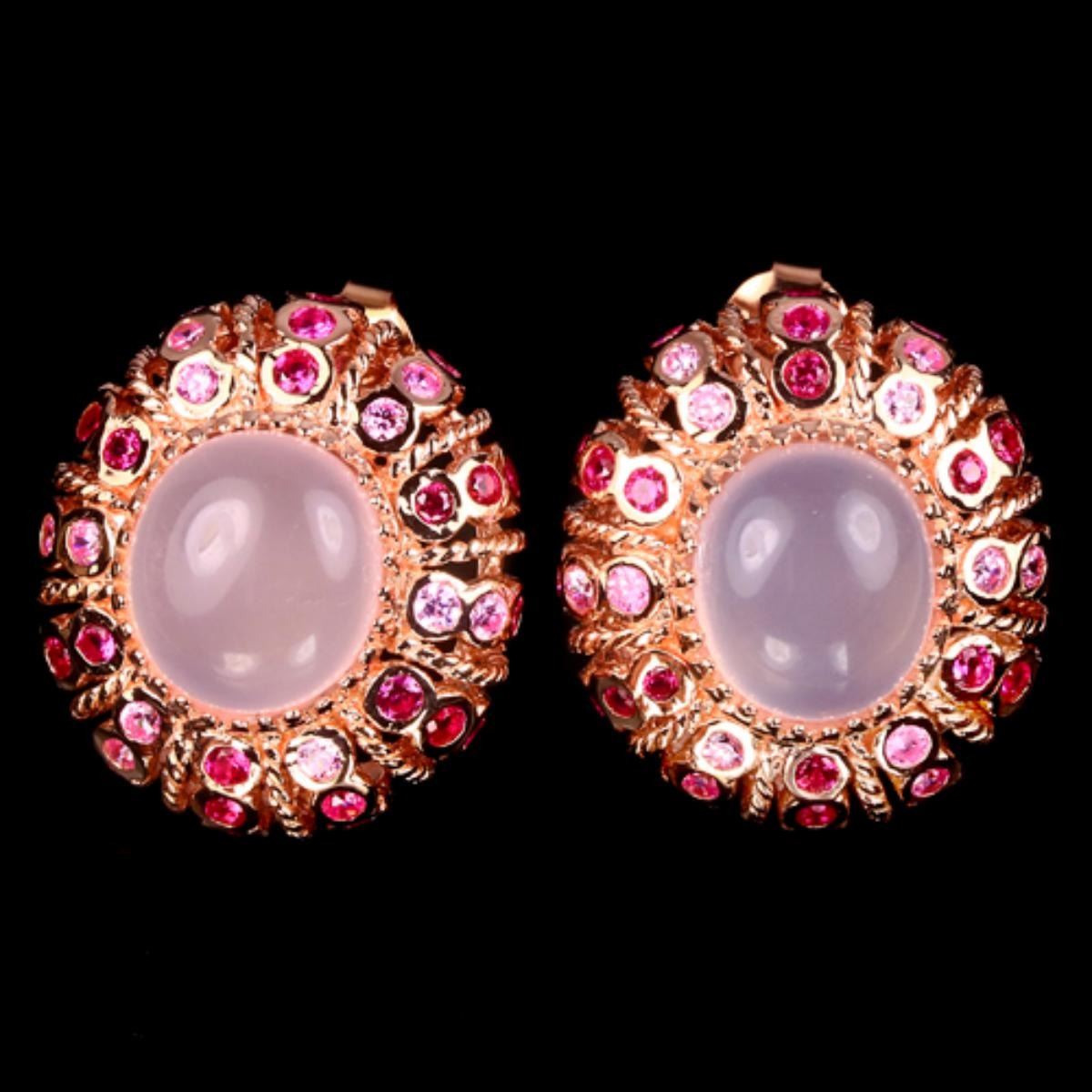 NATURAL ROSE QUARTZ & CZ 925 SILVER EARRING 14K PINK GOLD ;COATING;STONE SHAPEOVAL CABOCHON;STONE DIMENSION12 X 10 MM.ITEM WEIGHT12.9 GRAMCOLORPINK ROSECLARITYTRANLUCENTLUSTERALLURINGTREATMENTUNHEATEDORIGIN OF STONEBRAZILHARDNESS7.0OTHERFACE OF EARRING 23 X 21 MM. RED,PINK CUBIC ZIRCONIA 2 MM.