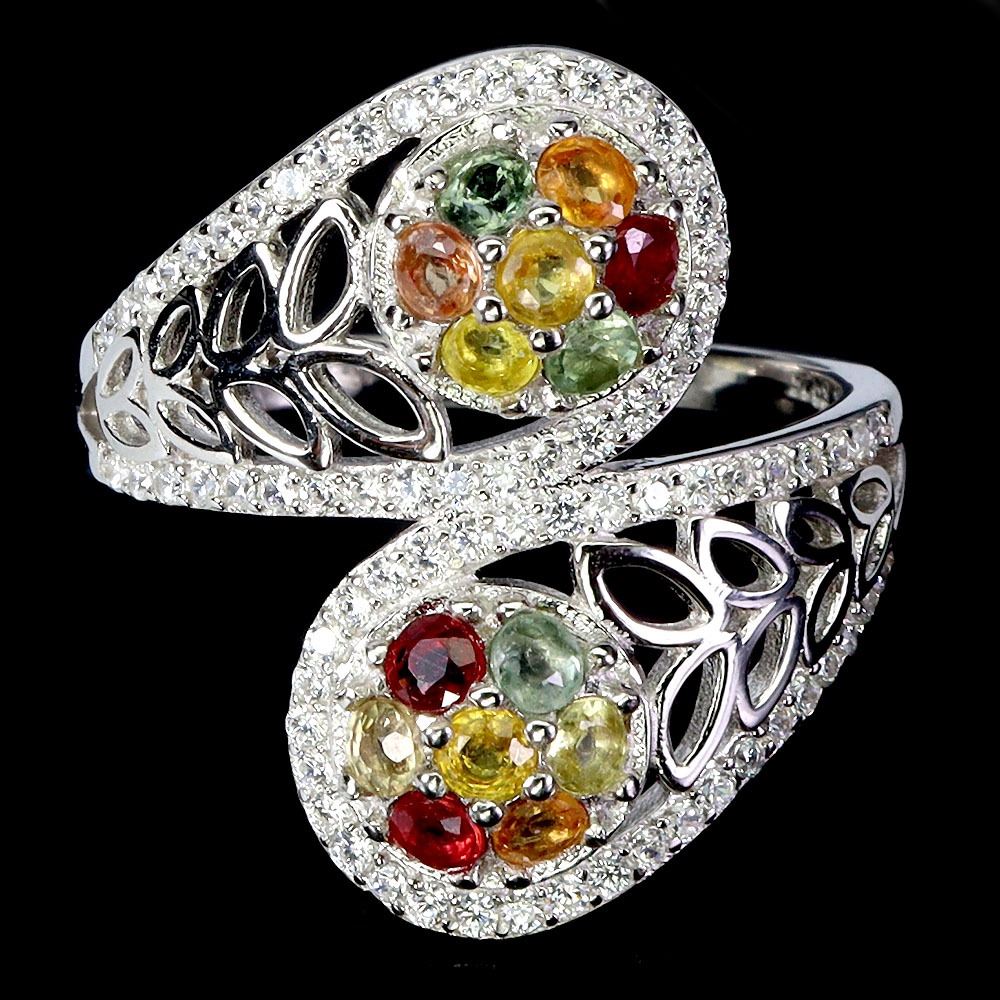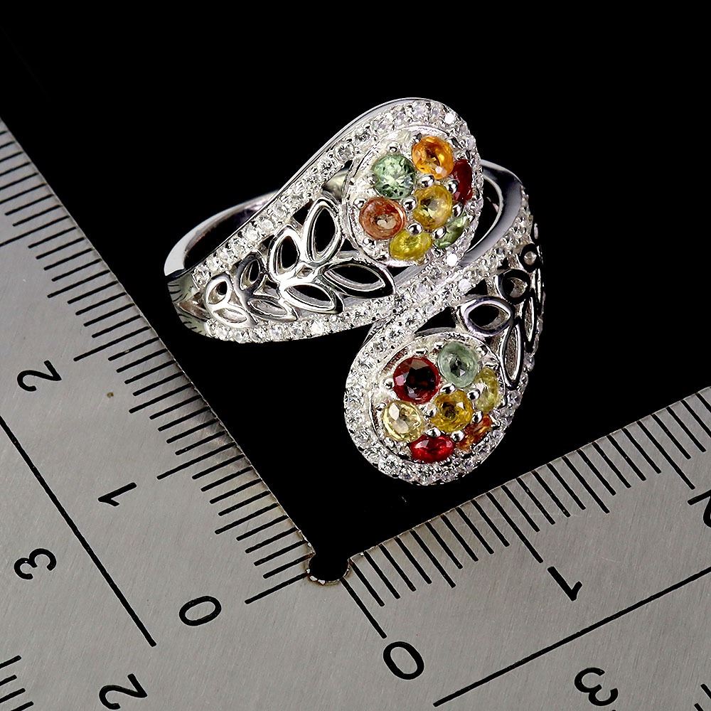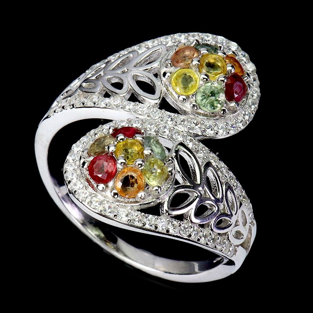 NATURAL SAPPHIRE RING IN 14K WHITE PLATED GOLD OVER 925 STERLING SILVER - SIZE 8 - APPRAISED REPLACEMENT VALUE