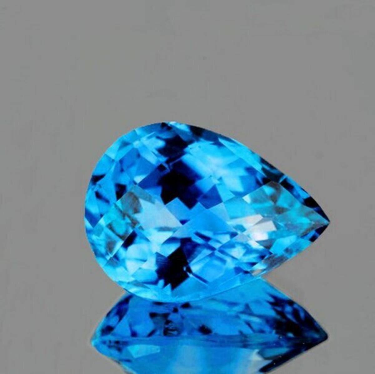 Natural Swiss Blue Topaz;SIZE ( L x W x D ) : 15.47 x 11.18 x 8.18 mm;COLOR : Swiss Blue Intense Color ; SHAPE : Pear Checker;QUANTITY : 1 piece;LUSTER : Excellent CLARITY : FLAWLESS-VVS (BEST QUALITY);HARDNESS : 8;ORIGIN : Brazil; TREATMENT : Standard;