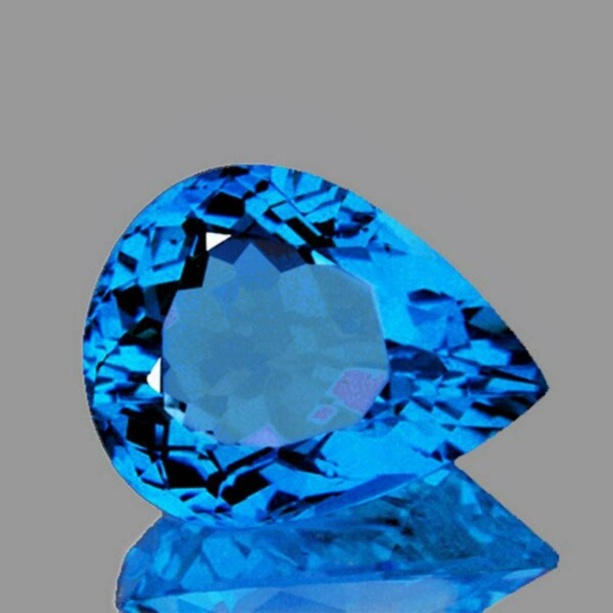 Natural Swiss Blue TopazSIZE ( L x W x D ) : 15.78 x 11.73 x 6.99 mmCOLOR : Swiss Blue Intense Color SHAPE : PearQUANTITY : 1 pieceLUSTER : Excellent CLARITY : FLAWLESS-VVS (BEST QUALITY)HARDNESS : 8ORIGIN : Brazil TREATMENT : Standard