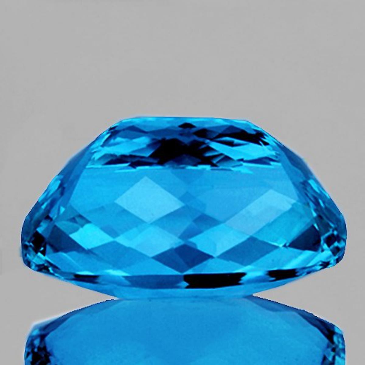 WEIGHT : Approximately 37.02ctsSTONE NAME : Natural Swiss Blue TopazSIZE ( L x W x D ) : 20.69 x 15.65 x 11.37 mmCOLOR : Swiss BlueSHAPE : CushionQUANTITY : 1 pieceLUSTER : Excellent CLARITY : FLAWLESS-VVS (BEST QUALITY)HARDNESS : 8ORIGIN : Brazil TREATMENT : Standard
