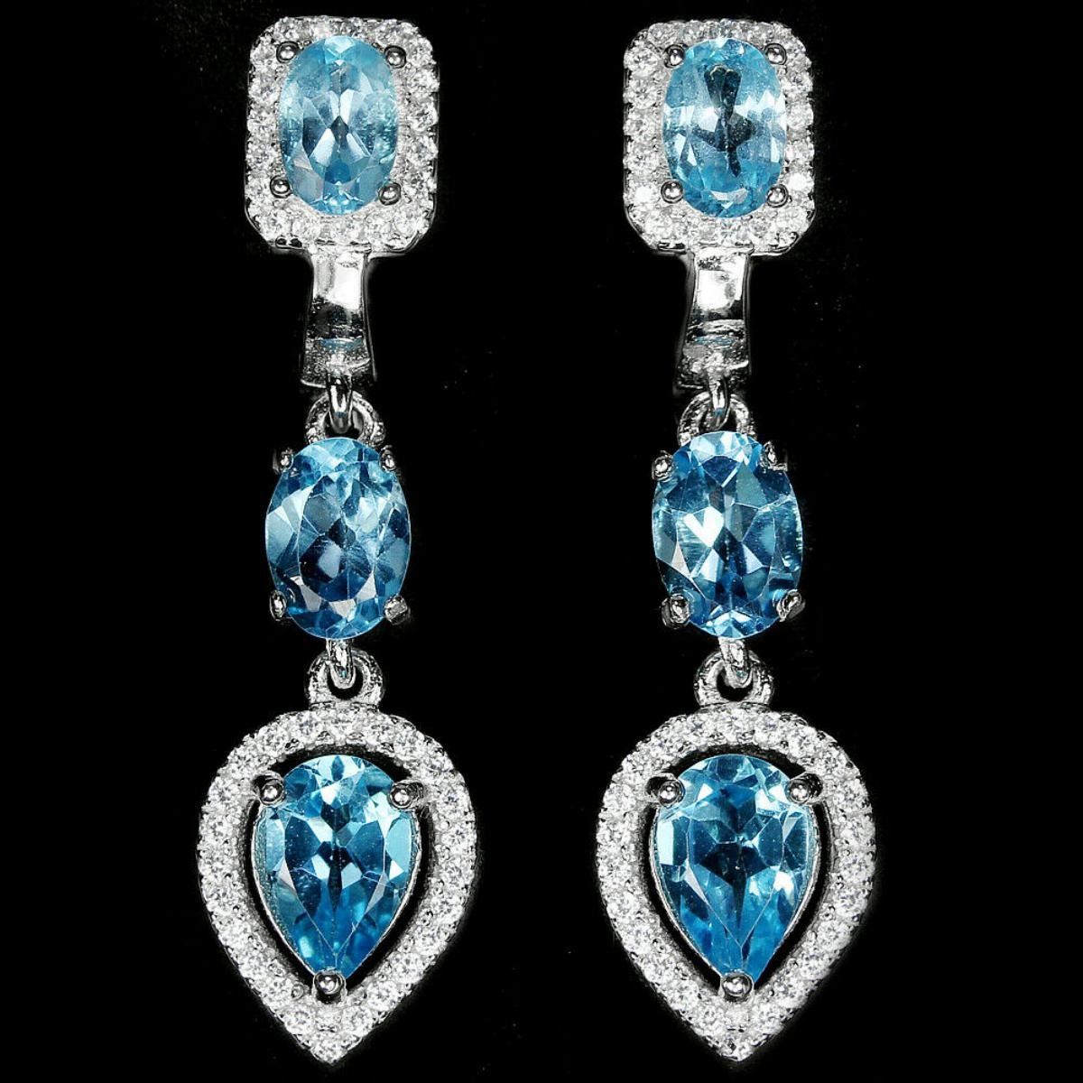 NATURAL AAA SWISS BLUE TOPAZ MIXED SHAPE & WHITE CZ STERLING 925 SILVER EARRING WITH 14K GOLD PLATED; Total Carat Weight (TCW):37.5; LENGTH 35 mm