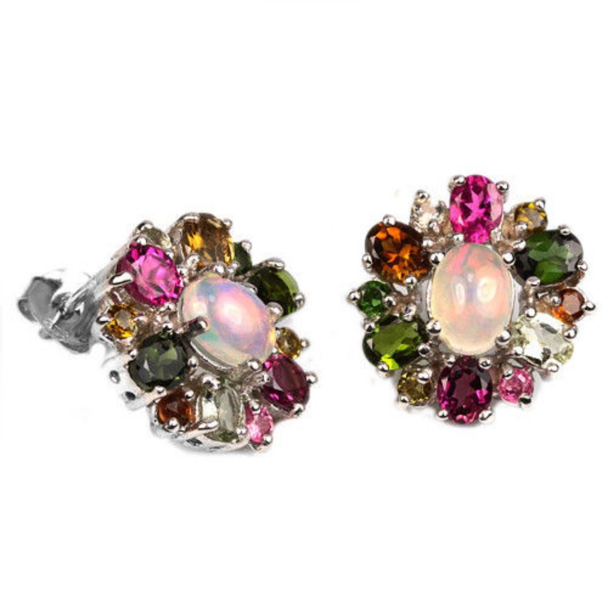 REAL WHITE OPAL MULTI COLOR TOURMALINE 925 SILVER EARRING 14K WHITE GOLD COATING;STONE SHAPEOVAL & ROUNDSTONE DIMENSION8 X 6 MM. , 5 X 4 MM. & 2.5 MM.ITEM WEIGHT7 GRAMCOLORMULTI COLORCLARITYTRANSLUCENT & VVS-VSLUSTERALLURINGTREATMENTNATURAL UNHEATEDORIGIN OF STONEAFRICAHARDNESS5.5 - 7.5;FACE OF EARRING 18 X 17 MM.