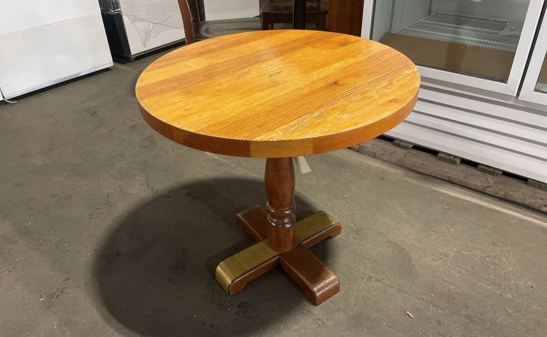 NATURAL WOOD 30  ROUND COMMERCIAL SINGLE PEDESTAL RESTAURANT TABLE