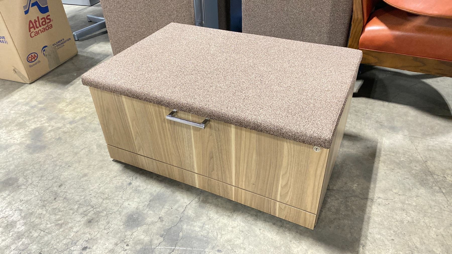 NATURAL WOOD LOOK SINGLE DRAWER STORAGE SEATING PEDESTAL 36"W X 24"D X 17"H