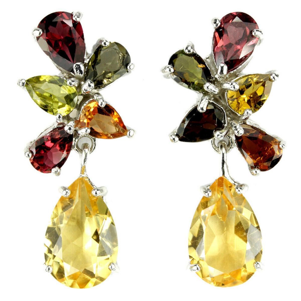 925 sterling silver with 14k gold plated; NATURAL YELLOW CITRINE & MULTI COLOR TOURMALINE Earrings; Total Carat Weight (TCW):31.5; length 29 MM... all stones are natural and untreated