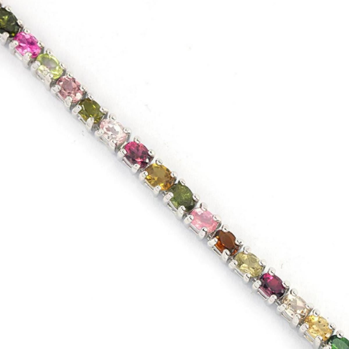 NATURAL MULTI COLOR TOURMALINE OVAL 925 SILVER BRACELET 14K WHITE GOLD COATING; LENGTH OF ITEM (Inch.) 7.50 ; ITEM QUANTITY 1 STONE SHAPE OVAL PORTUGUESE CUT STONE DIMENSION 4 X 3 MM. ITEM WEIGHT 12.4 GRAM ( 62 cts) COLOR MULTI COLOR CLARITY VVS, VS SI LUSTER ENCHANTING TREATMENT NATURAL UNHEATED ORIGIN OF STONE AFRICA HARDNESS 7.5