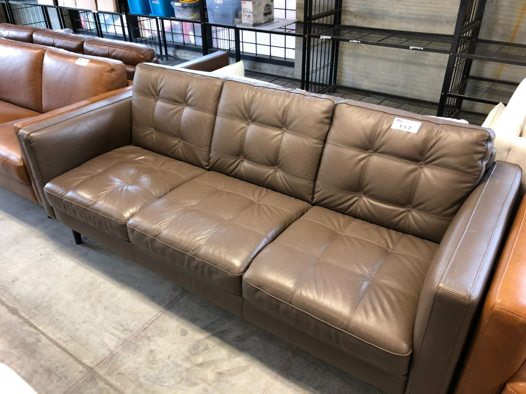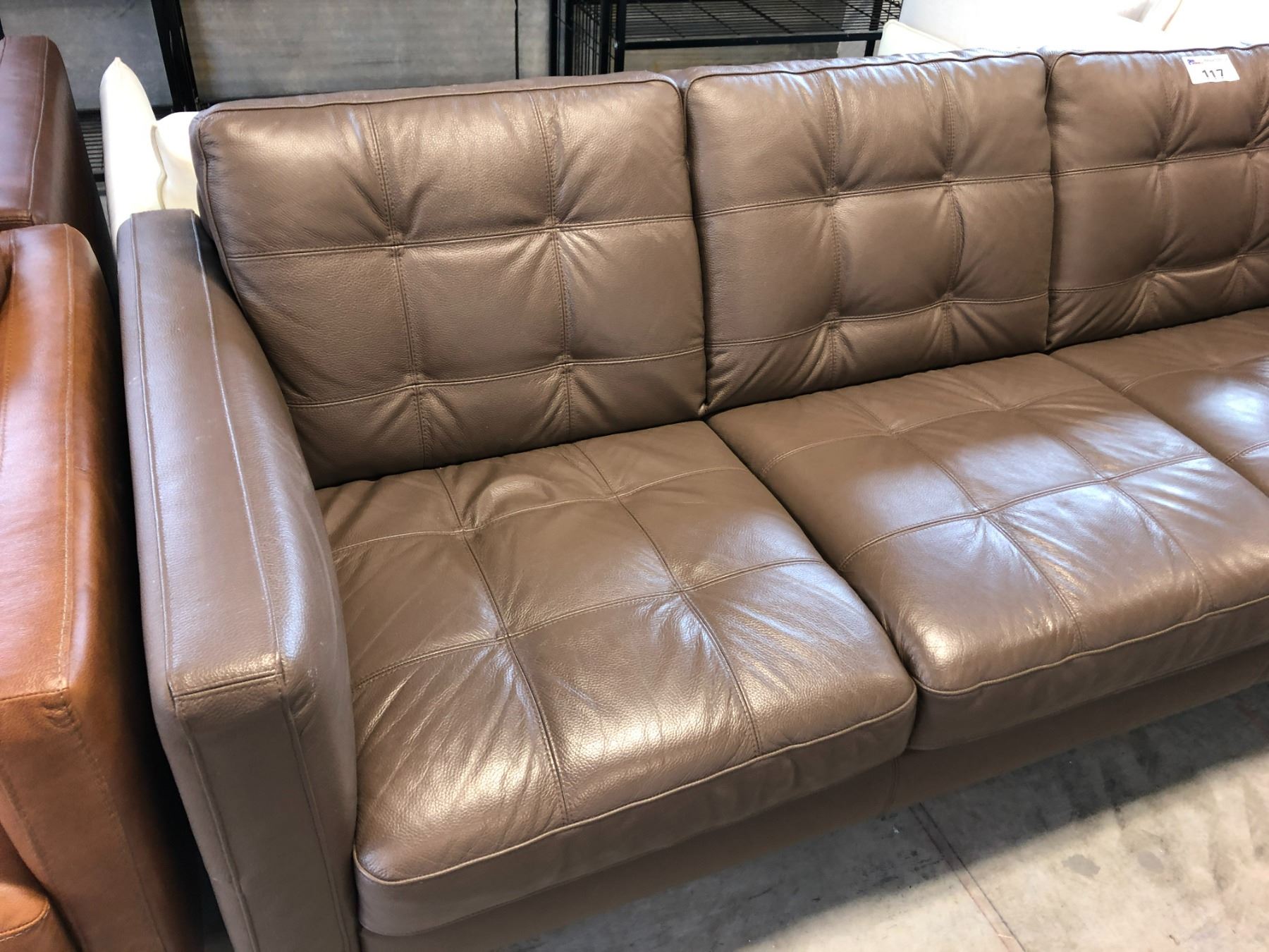NATUZZI EDITIONS DARK MOCHA LEATHER 3 PERSON SOFA 82" X 36"