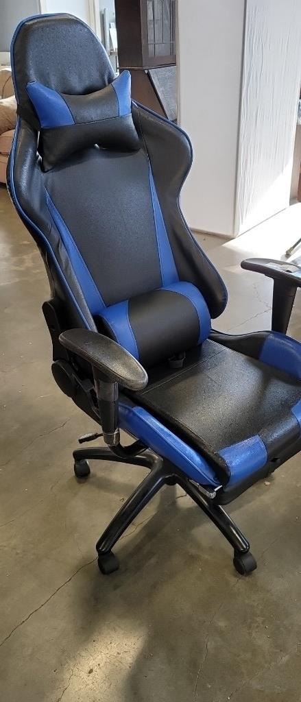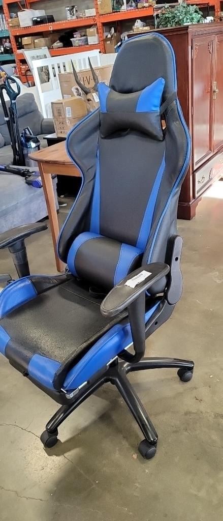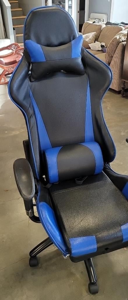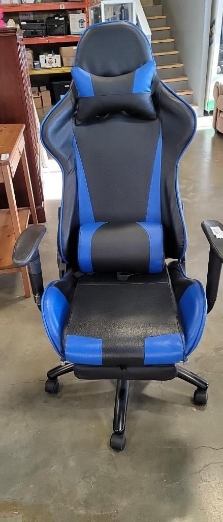 NAZ BLUE AND BLACK GAMING CHAIR W/ FOOT REST
